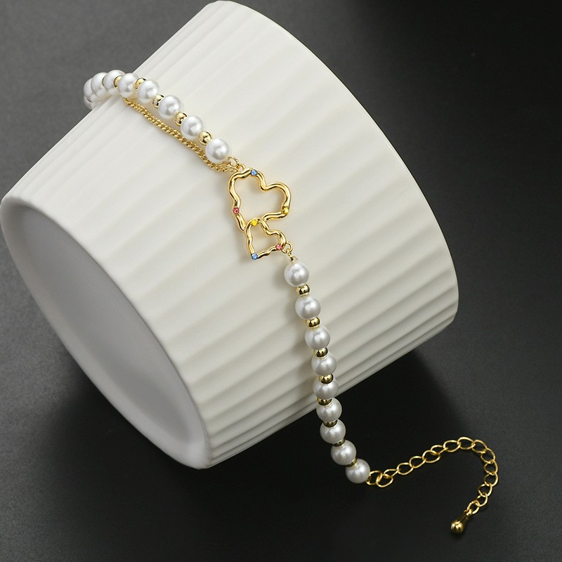 Bransoletka na rękę stal chirurgiczna pozłacana 14k złotem, PEREŁKI SERCA BST1531