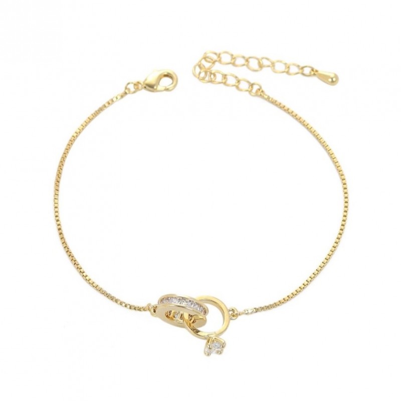 Bransoletka na rękę stal chirurgiczna pozłacana 14k złotem, PIERŚCIONEK z cyrkonią BST1533
