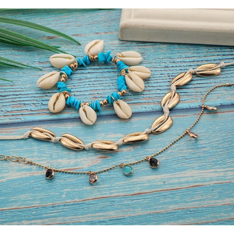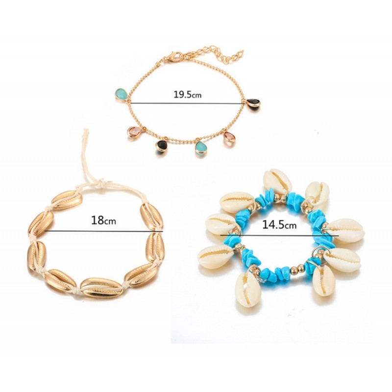 Bransoletka na stopę 3w1 złota koraliki turkusy B523