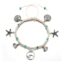 Bransoletka na stopęBransoletka z regulacjąWykonana ze stopu metali nieszlachetnychNie zawiera niklu ani chromu Wymiary:Podane na ostatnim zdjęciu