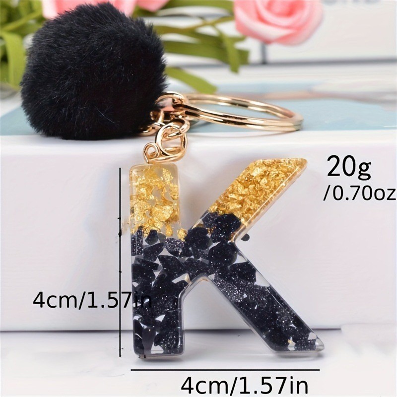 Brelok do kluczy LITERKA "K" czarno-złota z pomponem, żywica BRL342K