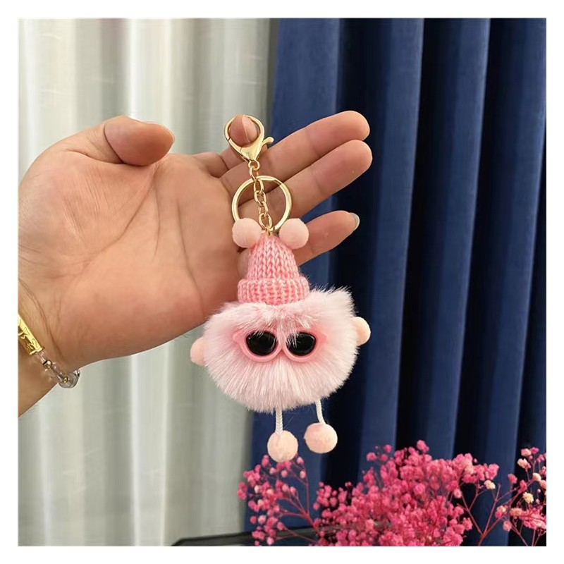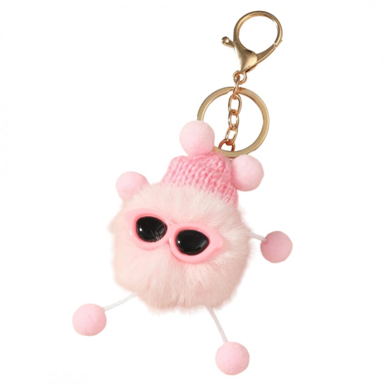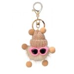 Brelok do kluczy ludzik Pompon z czapką i okularami różowy BRL336R