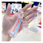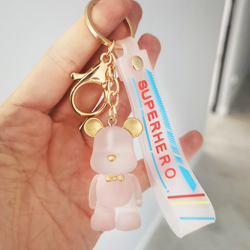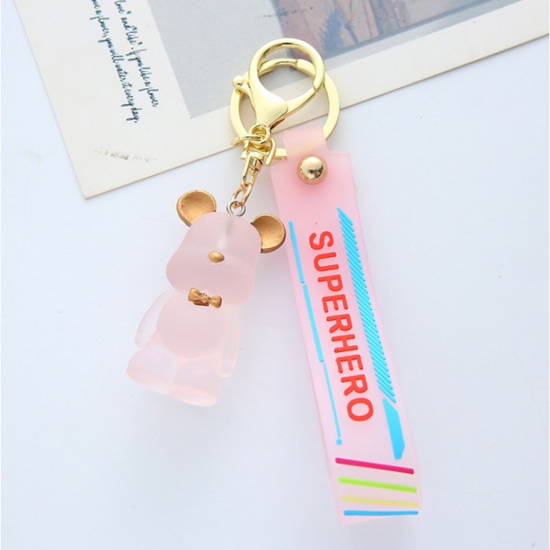 Brelok do kluczy miś TRANSPARENTNY róż przywieszki BRL51