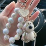 Brelok do kluczy, perłowy Miś z koralikami Różowy BRL366R