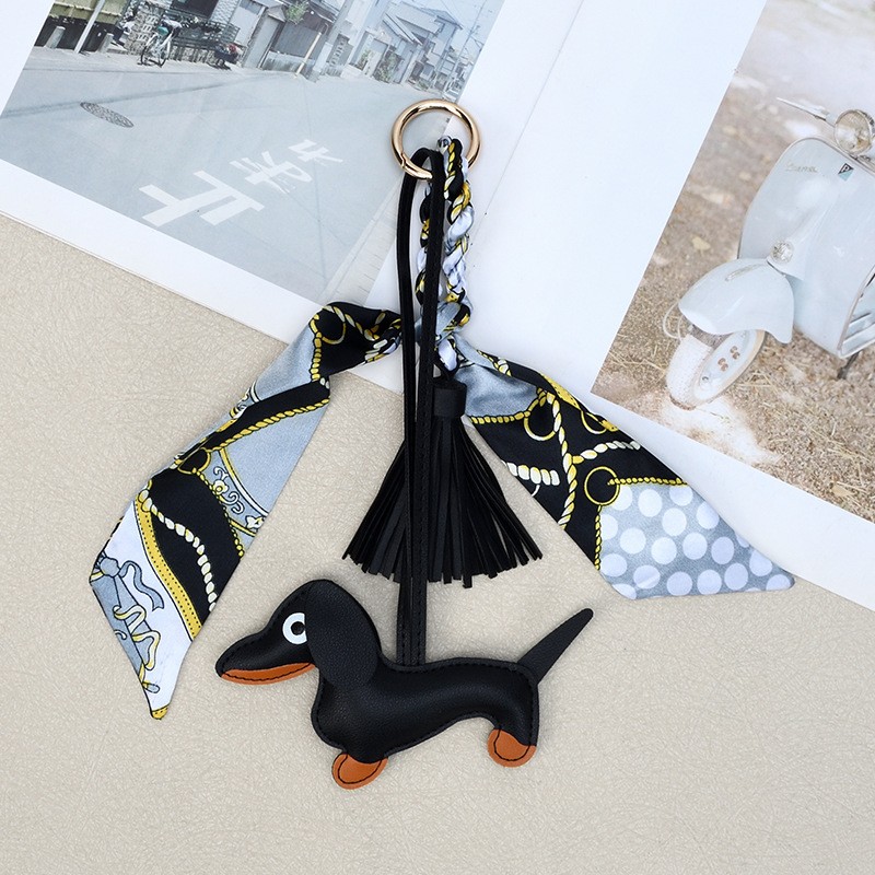 Brelok do kluczy skórzany JAMNIK czarny z frędzlami BRL374CZ