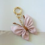 Brelok do kluczy skórzany MOTYL, KOKARDKA różowy BRL367R