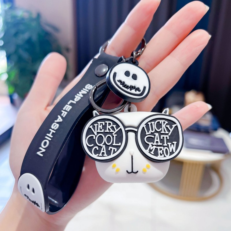 Brelok do kluczy WONDERFUL DAY Kot w okularach biały 5,2 x 4,5 cm BRL331B