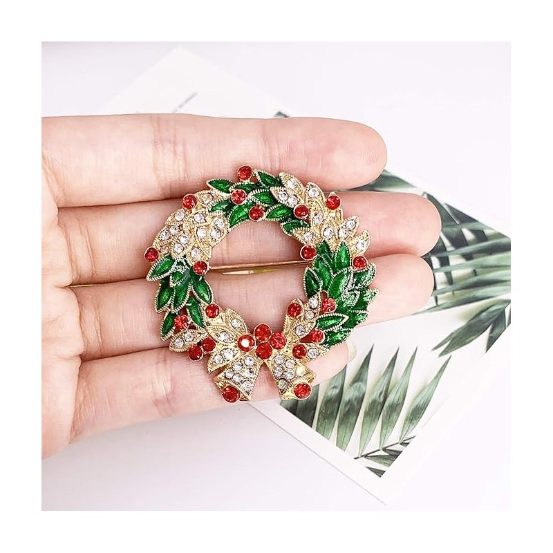 Broszka ozdobna elegancka cyrkonie, wieniec świąteczny z dzwonkami BZ185