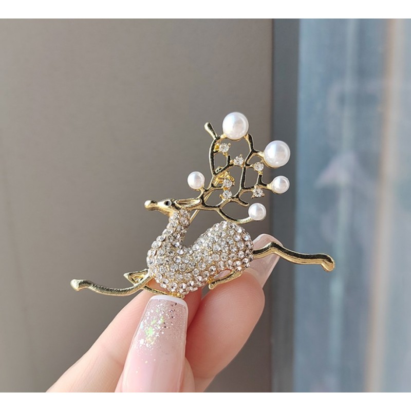 Broszka ozdobna kryształki BIAŁY JELONEK BZ178
