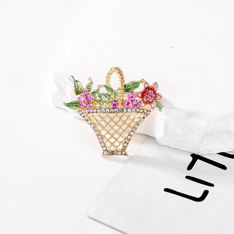 Broszka ozdobna Kryształowy Koszyczek z Kwiatami BZ137