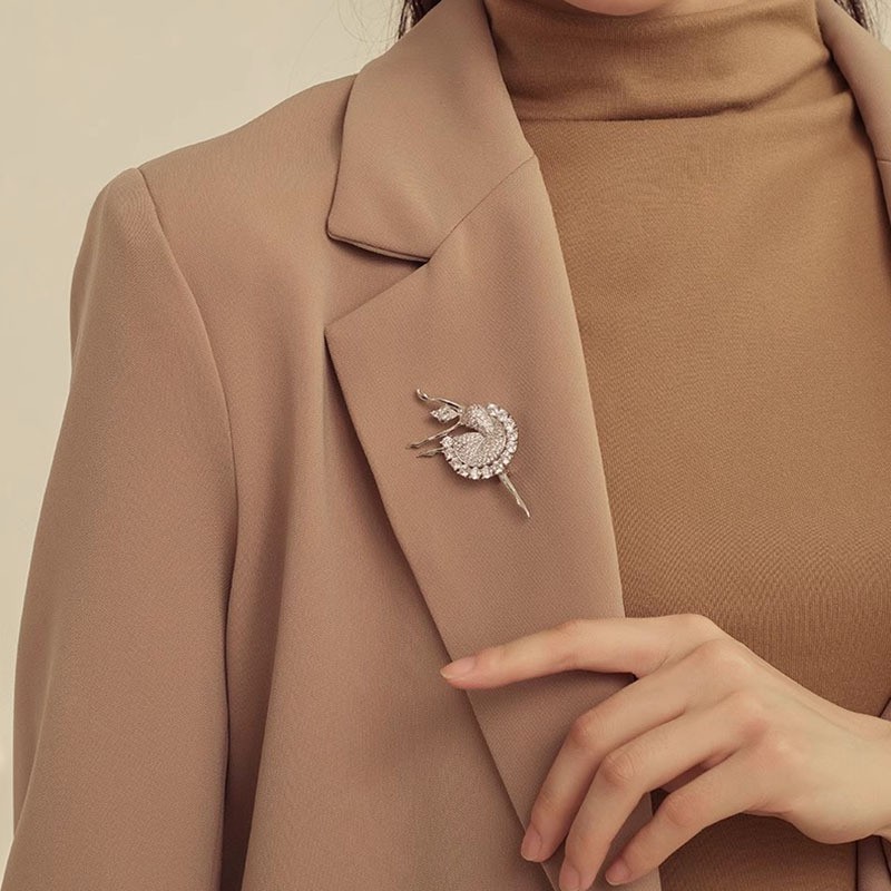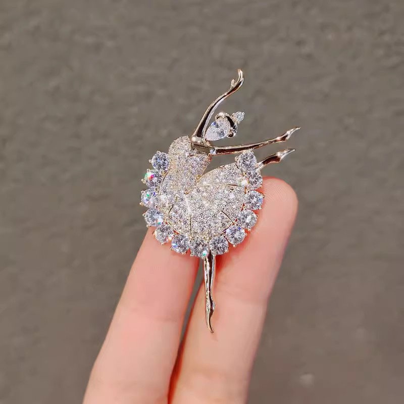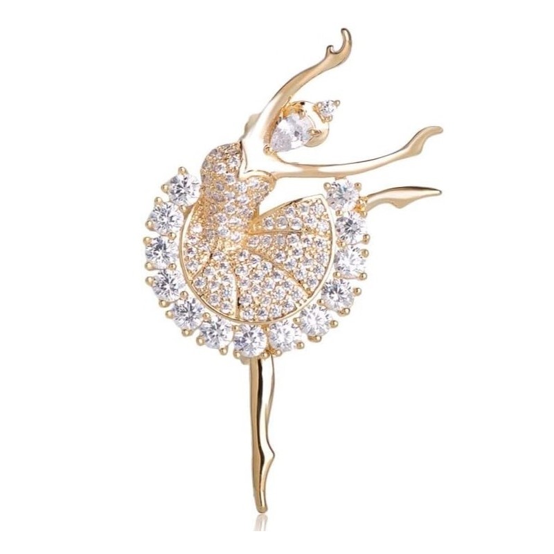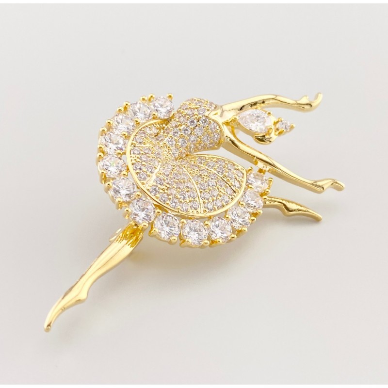 Broszka ozdobna złota Baletnica z cyrkoniami BZ202