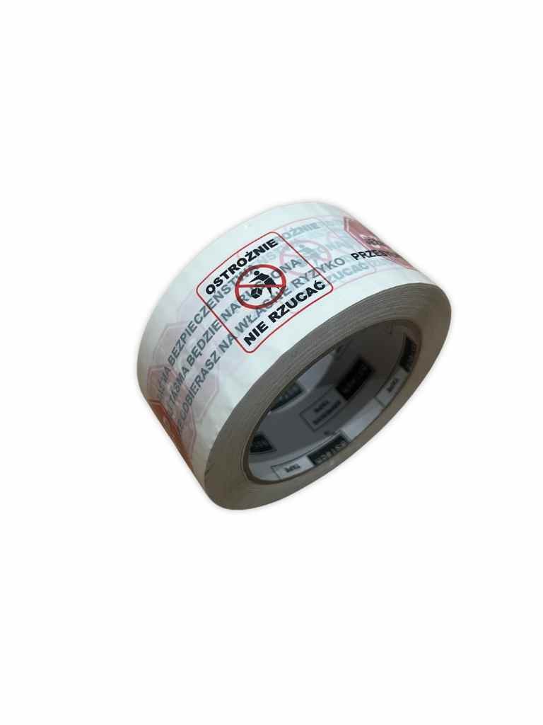 BSTech Taśma klejąca, pakowa z nadrukiem, 48x100m. „Taśma bezpieczenstwa STOP”.