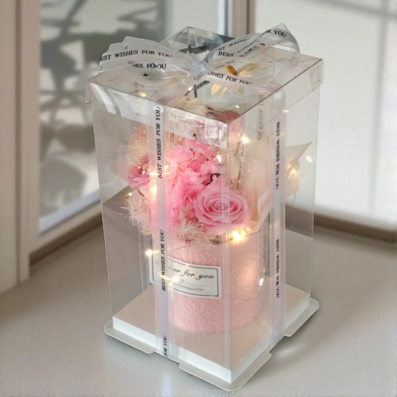– Możliwość włączania i wyłączania lampek. Materiał: kwiaty mydlane / opakowanie z tworzywa sztucznego. Wymiary: