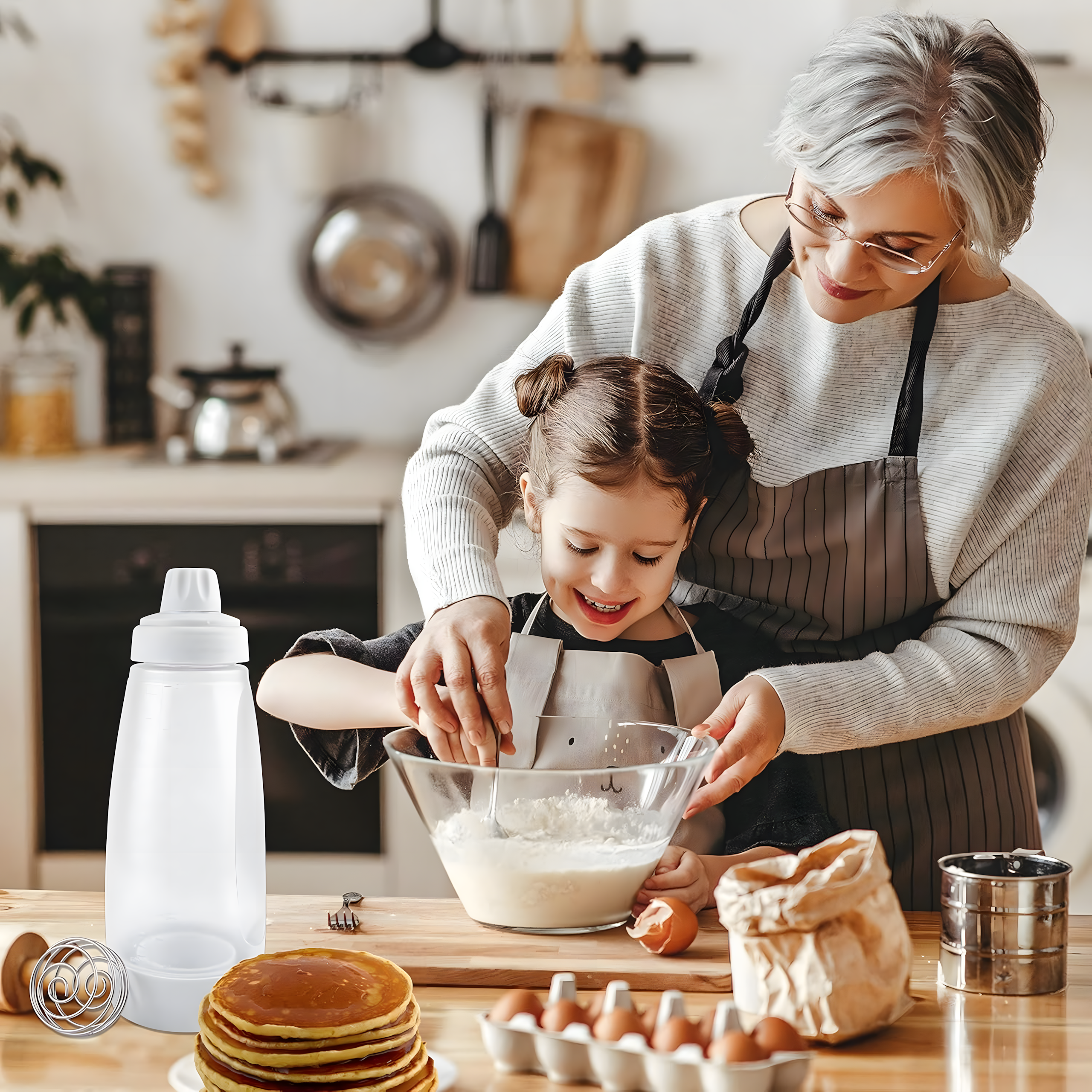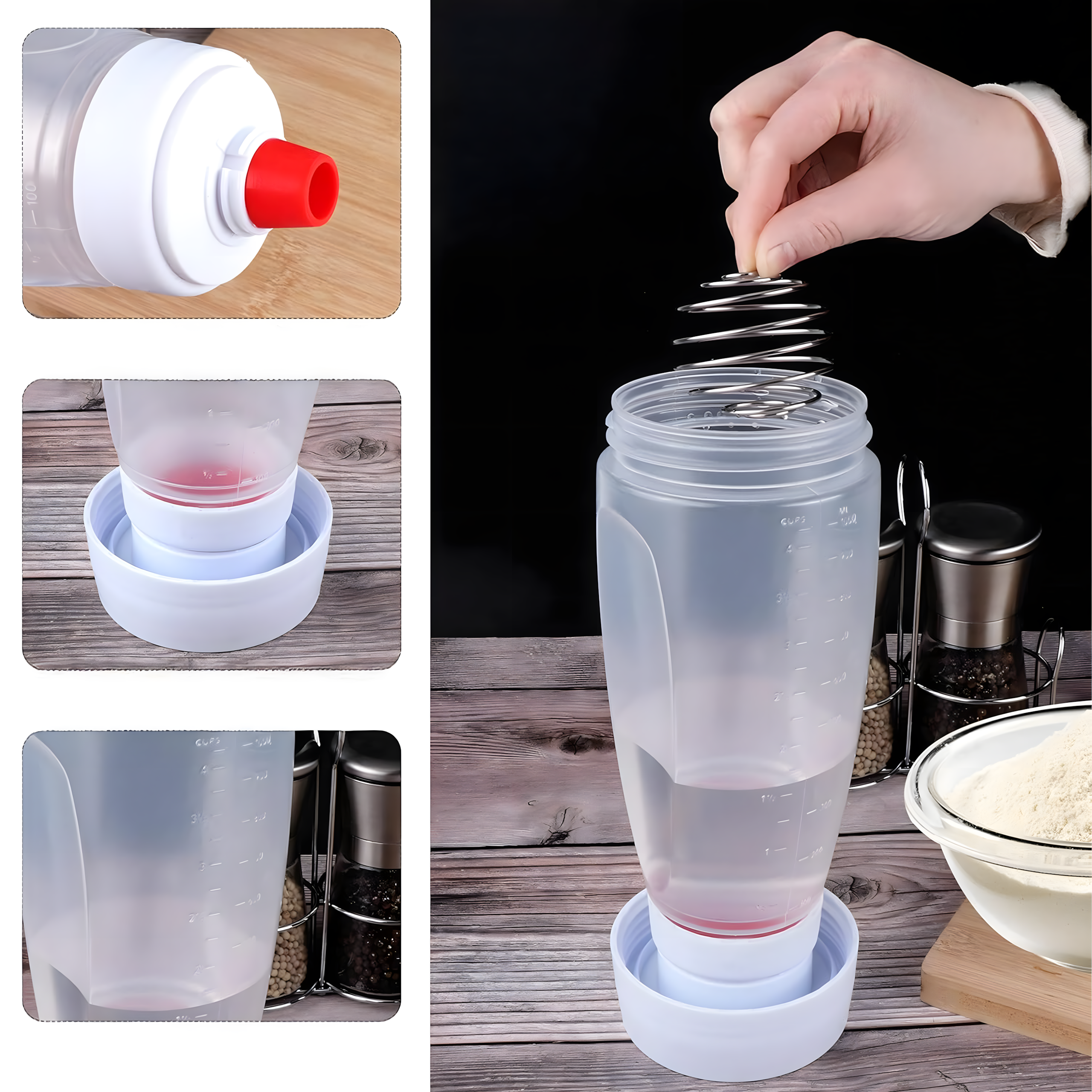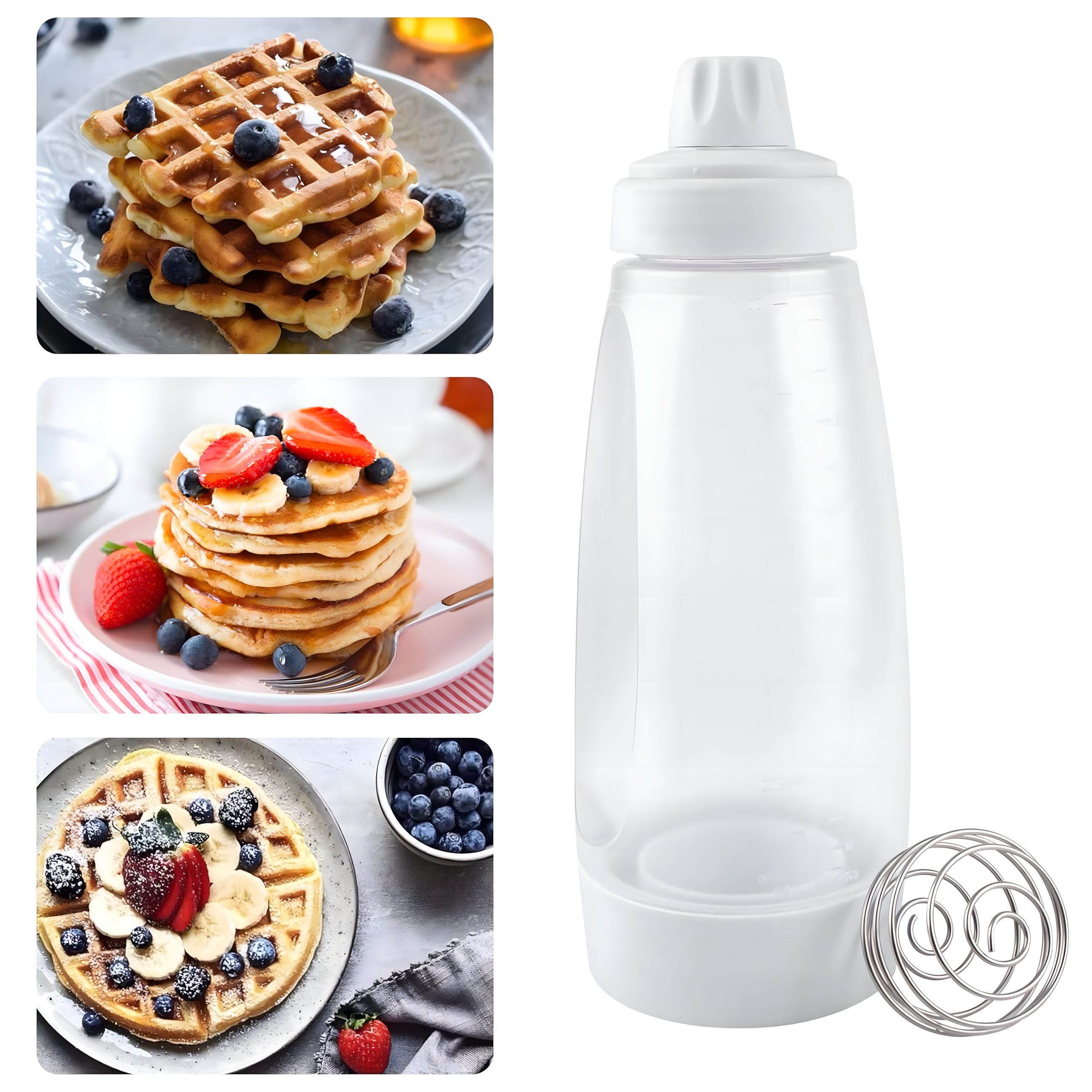 Butelka do mieszania i dozowania ciasta 1000 ml to praktyczny dyspenser, który ułatwia przygotowanie naleśników, gofrów i pancakes. Dzięki wbudowanej trzepaczce, silikonowej końcówce i precyzyjnemu dozowaniu, szybko wymieszasz i rozlejesz ciasto – bez bałaganu!
