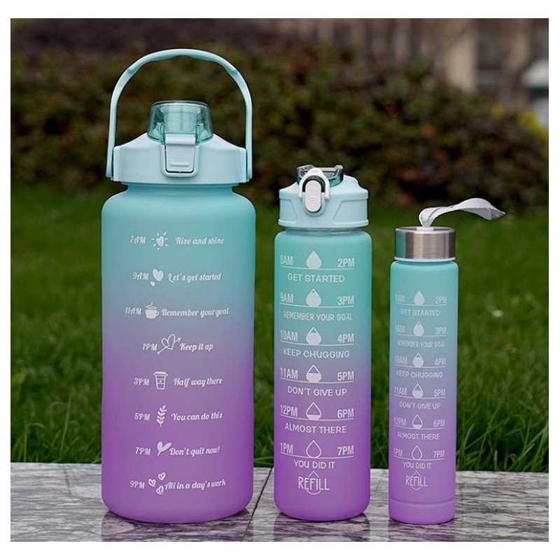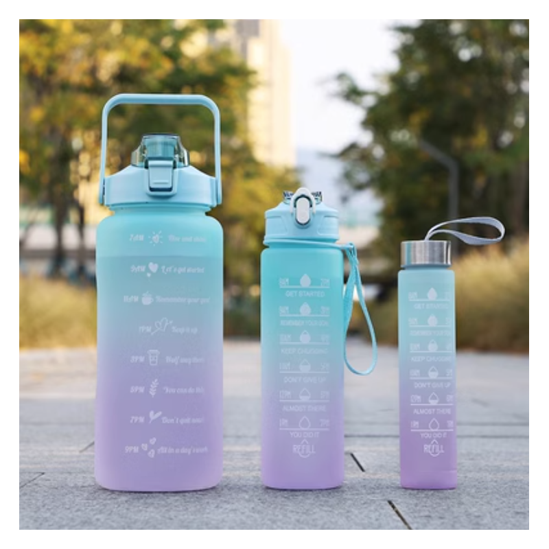 Butelka na wodę Bidon ombre 3w1 z miarką przenośny Zestaw 3 pięknych bidonów na wodę lub inne napoje To świetne rozwiązanie dla osób aktywnych, uprawiających sport.