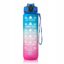 Butelka na wodę, bidon z miarką i słomką 1L OMBRE Niebieski z Fuksją BD18