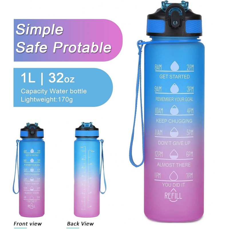 Butelka na wodę, bidon z miarką i słomką 1L OMBRE Zieleń z Różem BD19