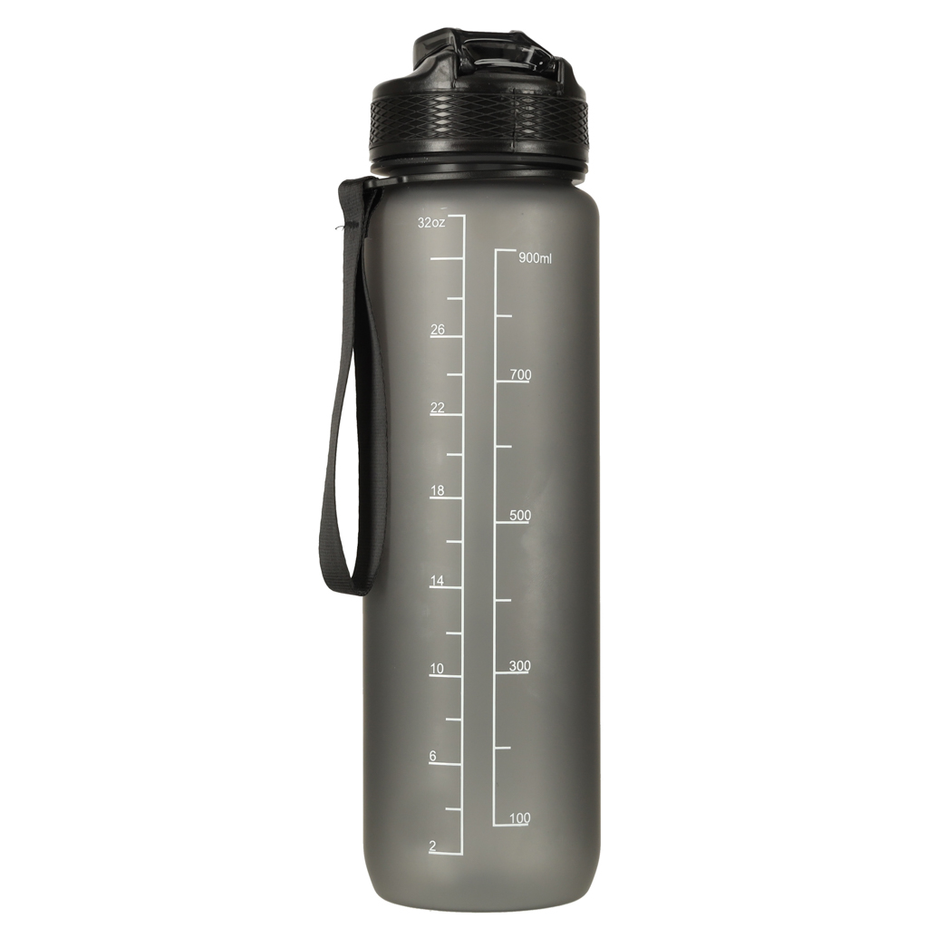 Butelka na wodę bidon ze słomką uchwytem miarką motywacyjną na siłownię BPA free Tritan 1l czarna