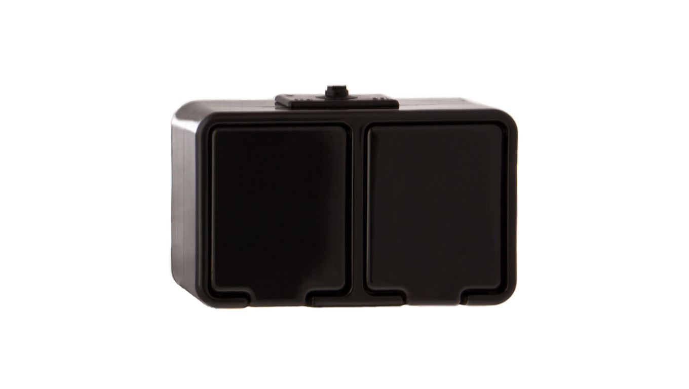 Cedar Gniazdo hermetyczne podwójne z/u 16A IP44 czarne Nt-230H NT230H05