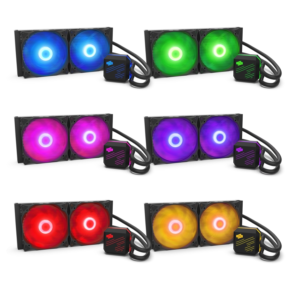 Na chłodnicy montowane są specjalnie zaprojektowane wentylatory z serii Sigma HP RGB o rozmiarze 140 mm. Charakteryzuje się specjalnym kształtem łopatek zapewniającym wysokie ciśnienie statyczne, potrzebne do efektywnego owiewania gęsto ułożonych na chłodnicy finów, co w konsekwencji szybko obniża temperaturę cieczy przepływającej w układzie. Wyposażone w wytrzymałe łożysko HBS wentylatory działają cicho, a ich prędkość sterowana jest automatycznie za pomocą regulacji PWM.