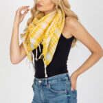 Elegancka chusta z geometrycznym wzorem to stylowy dodatek, który doskonale uzupełni każdą garderobę. Wykonana z wysokiej jakości wiskozy, jest lekka, miękka i przyjemna w dotyku, zapewniając komfort noszenia. Dzięki swoim wymiarom 190 cm długości i 69 cm szerokości, można ją nosić na wiele sposobów, tworząc różnorodne stylizacje. Geometryczny wzór nadaje mu nowoczesnego charakteru, czyniąc go idealnym wyborem zarówno do codziennych, jak i bardziej eleganckich outfitów.