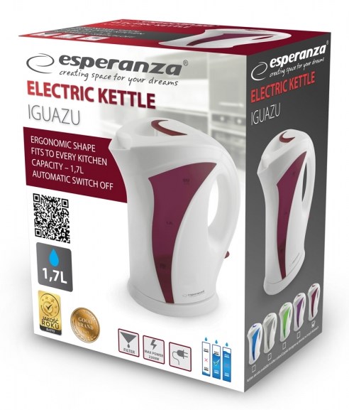 Czajnik elektryczny Esperanza Iguazu EKK018R (2200W 1.7l; kolor biały, kolor czerwony)