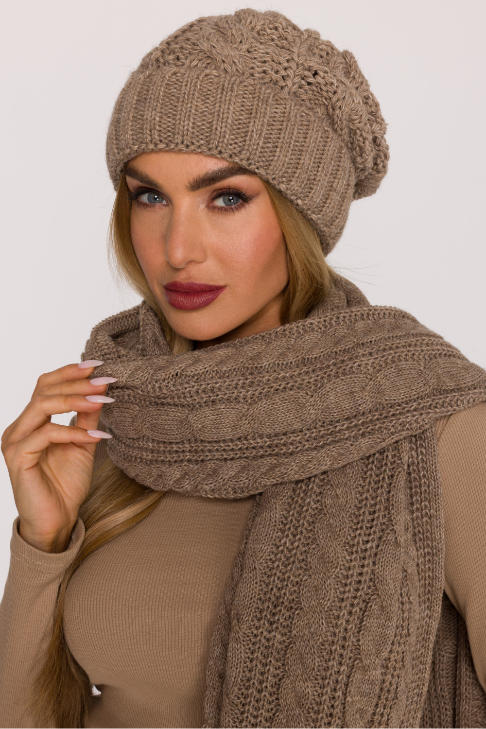 Ciepła czapka wykonana z miękkiej przędzy o grubym, warkoczowym splocie. Prosty fason z delikatnym luzem w górnej części nadaje całości swobodny, stylowy charakter. Podwijany brzeg zapewnia dodatkowy komfort i lepsze dopasowanie, a dekoracyjny splot warkoczowy dodaje jej klasycznego, zimowego uroku.