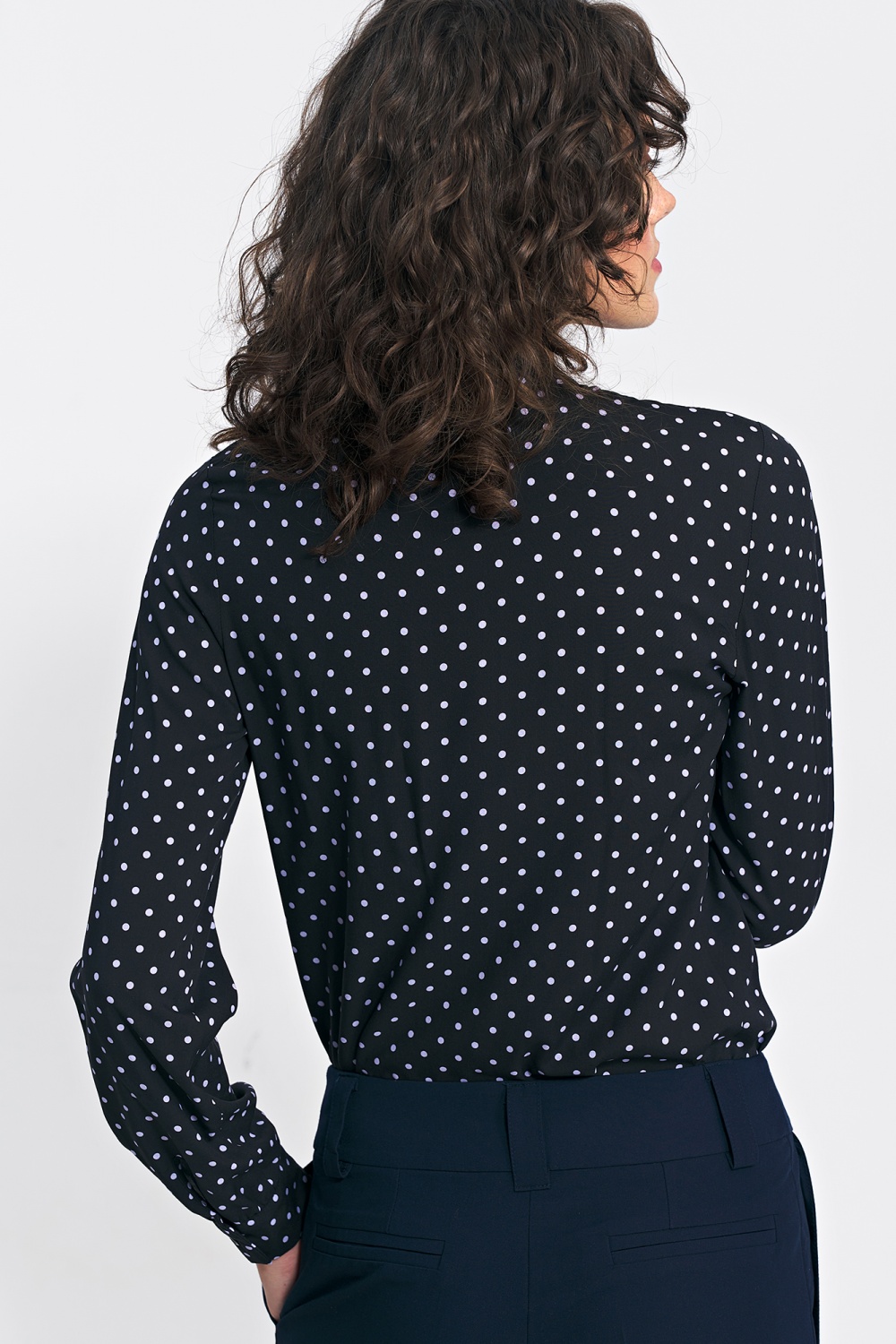 Czarna bluzka na stójce w groszki B155 Black – Nife