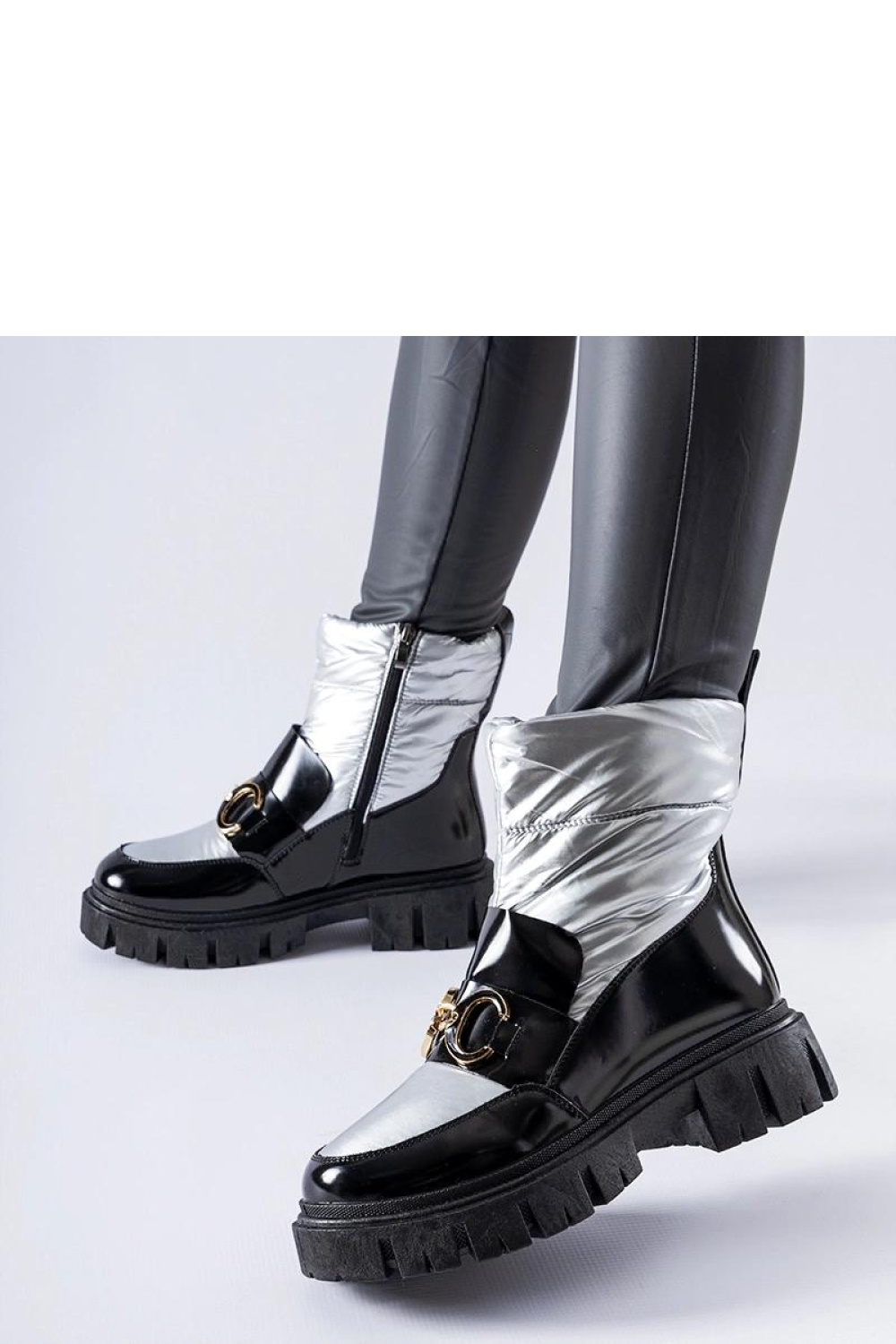 Czarno-srebrne lakierowane śniegowce Winter to doskonały wybór na zimę. Dzięki ocieplanemu wnętrzu zapewniają ciepło nawet podczas najchłodniejszych dni. Ich okrągły nosek nie tylko zapewnia swobodę ruchu dla palców, ale także dodaje elegancji całemu modelowi. Wykonane z wysokiej jakości gumy, są odporne na warunki atmosferyczne, co gwarantuje ich trwałość. Te innowacyjne śniegowce nie tylko są praktyczne, ale także modne, co sprawia, że są niezbędnym elementem garderoby każdej stylowej kobiety. Bez względu na okazję, te buty będą doskonałym uzupełnieniem Twojego stroju zimowego. Zapięcie na zamek ułatwia ich zakładanie i zdejmowanie. Materiał zewnętrzny to tkanina, a podeszwa wykonana jest z czarnej gumy. Te śniegowce pochodzą z kolekcji Jesień/Zima.