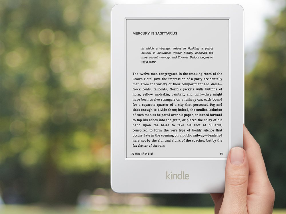Wyświetlacz Kindle jest wyposażony w technologię E-ink, która sprawia, że wyświetlony tekst wygląda niemal identycznie jak ten spotykany w tradycyjnych książkach.