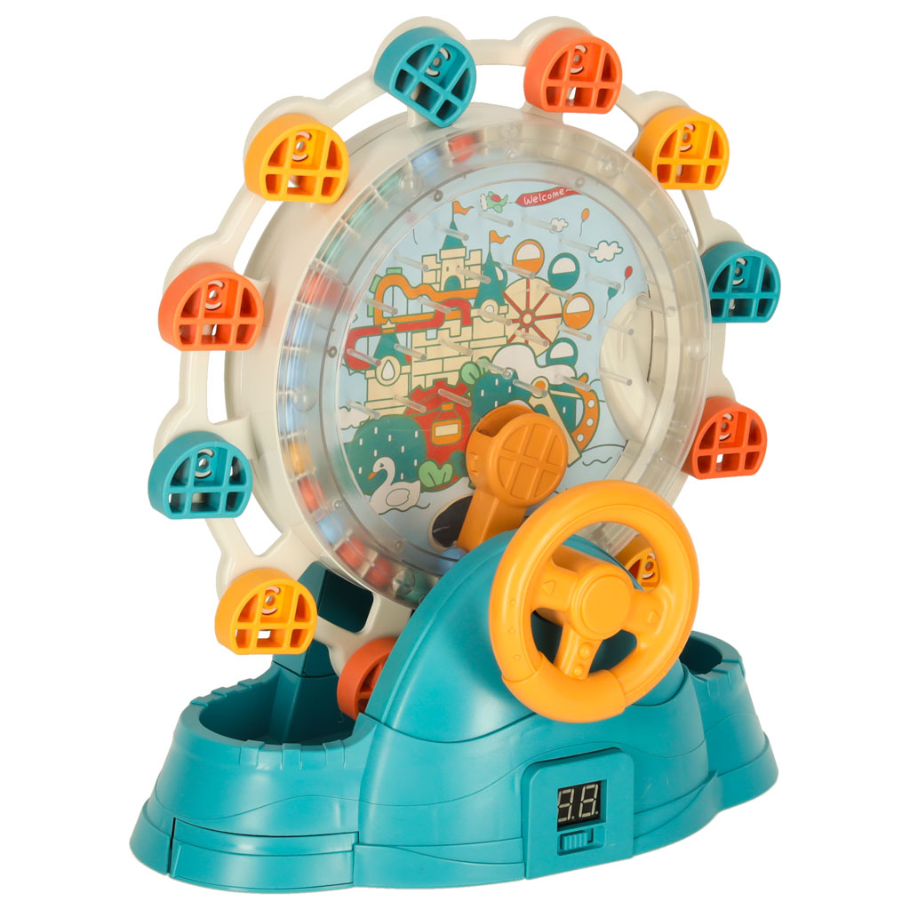 diabelskim młynem, pojemnikiem na kulki, sterowaną kierownicą i rynienką do