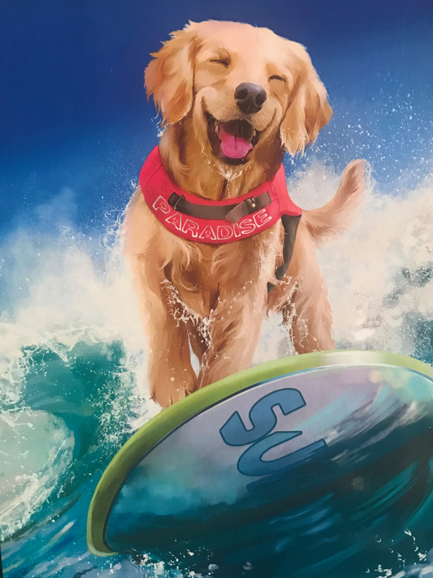 Przywołaj życie na płótno za pomocą „Diamentowego Haftu – serfującego psa”!