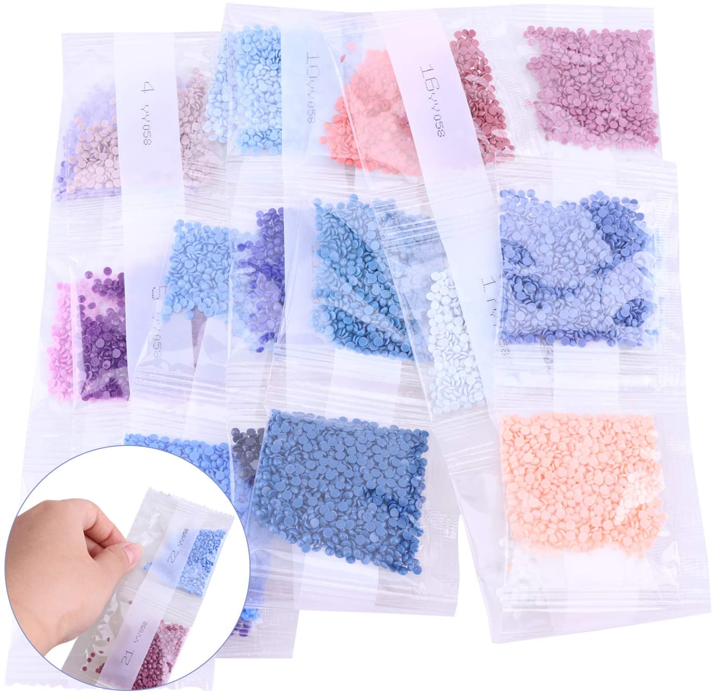 Wybierz diamenciki: Znajdź na odkrytej części płótna odpowiednie symbole i numery, które odpowiadają kolorom diamencików. Wsyp porcję wybranego koloru kryształków do plastikowego pojemnika.