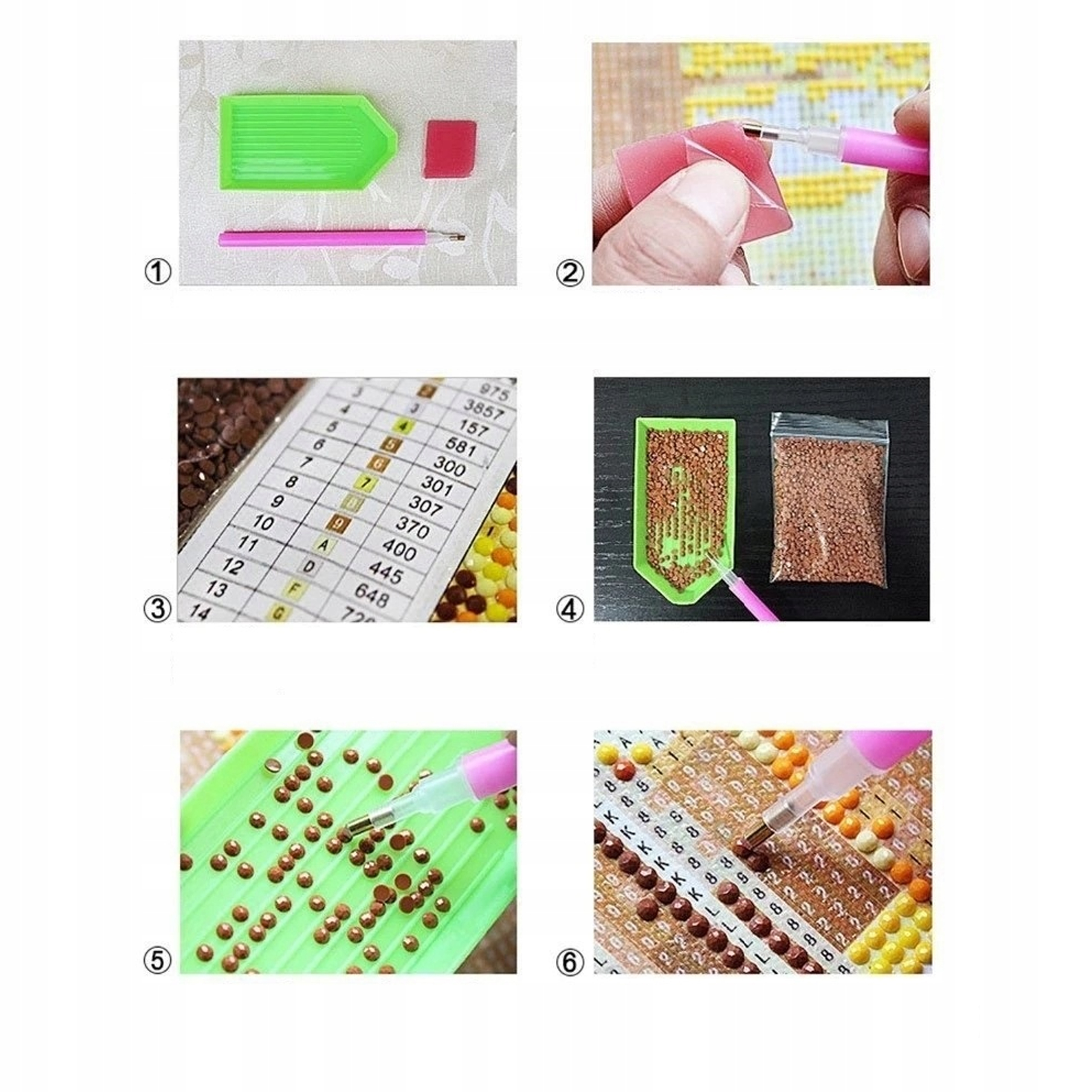 W skład zestawu wchodzi płótno z naniesionymi numerami w określonych polach. Każdy numer odpowiada określonemu kolorowi diamencików, a Twoim zadaniem jest wypełnienie tych pól odpowiednimi kolorami.
