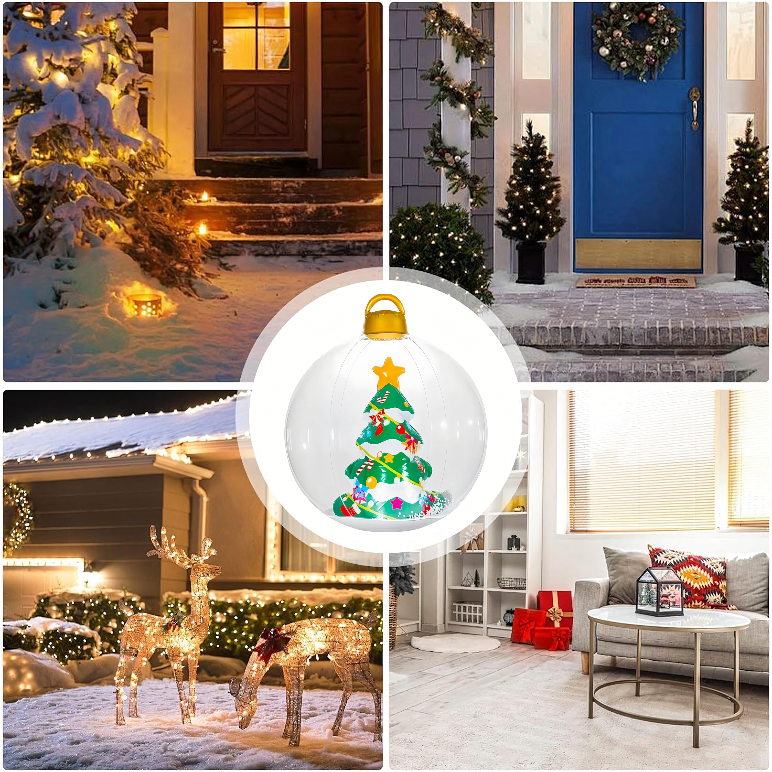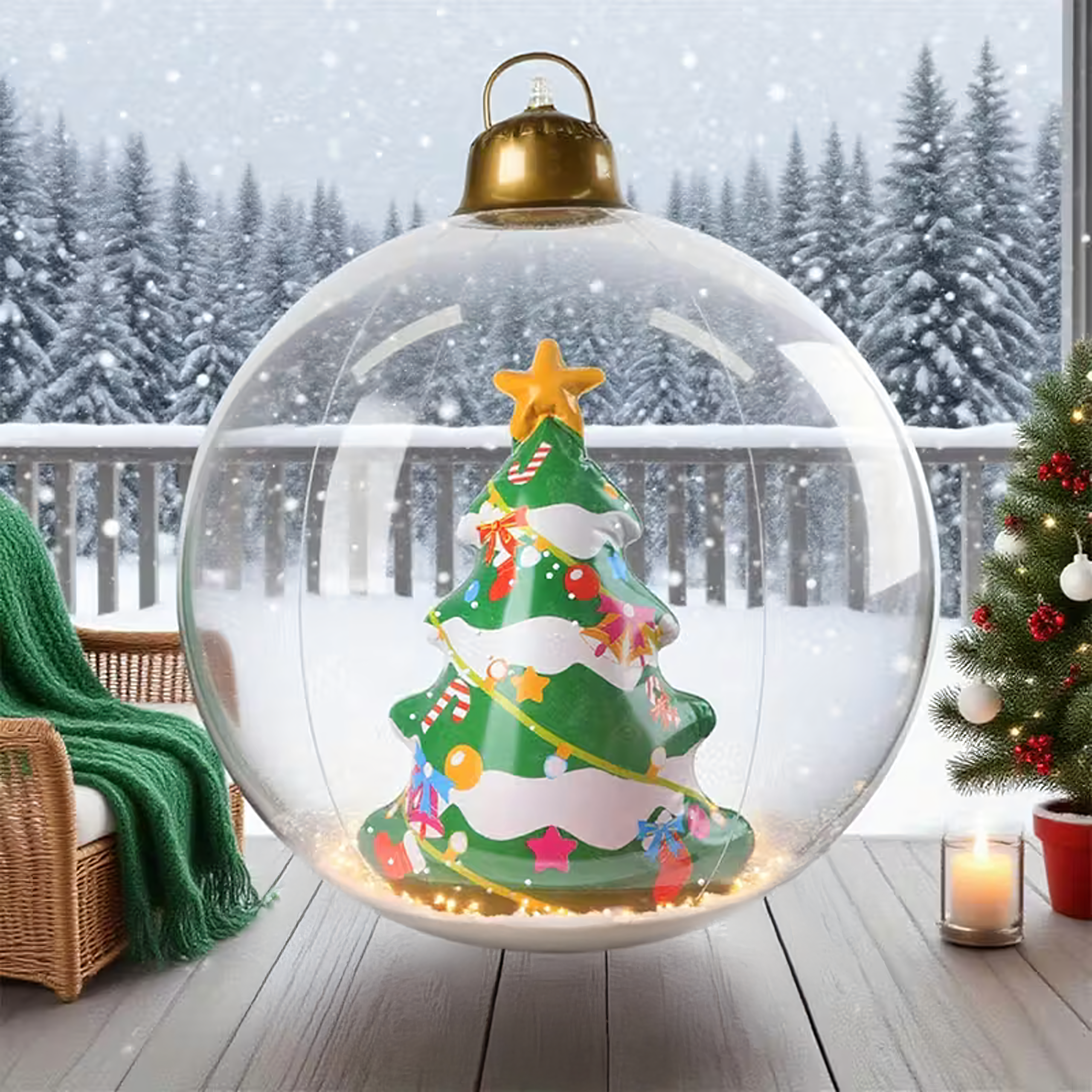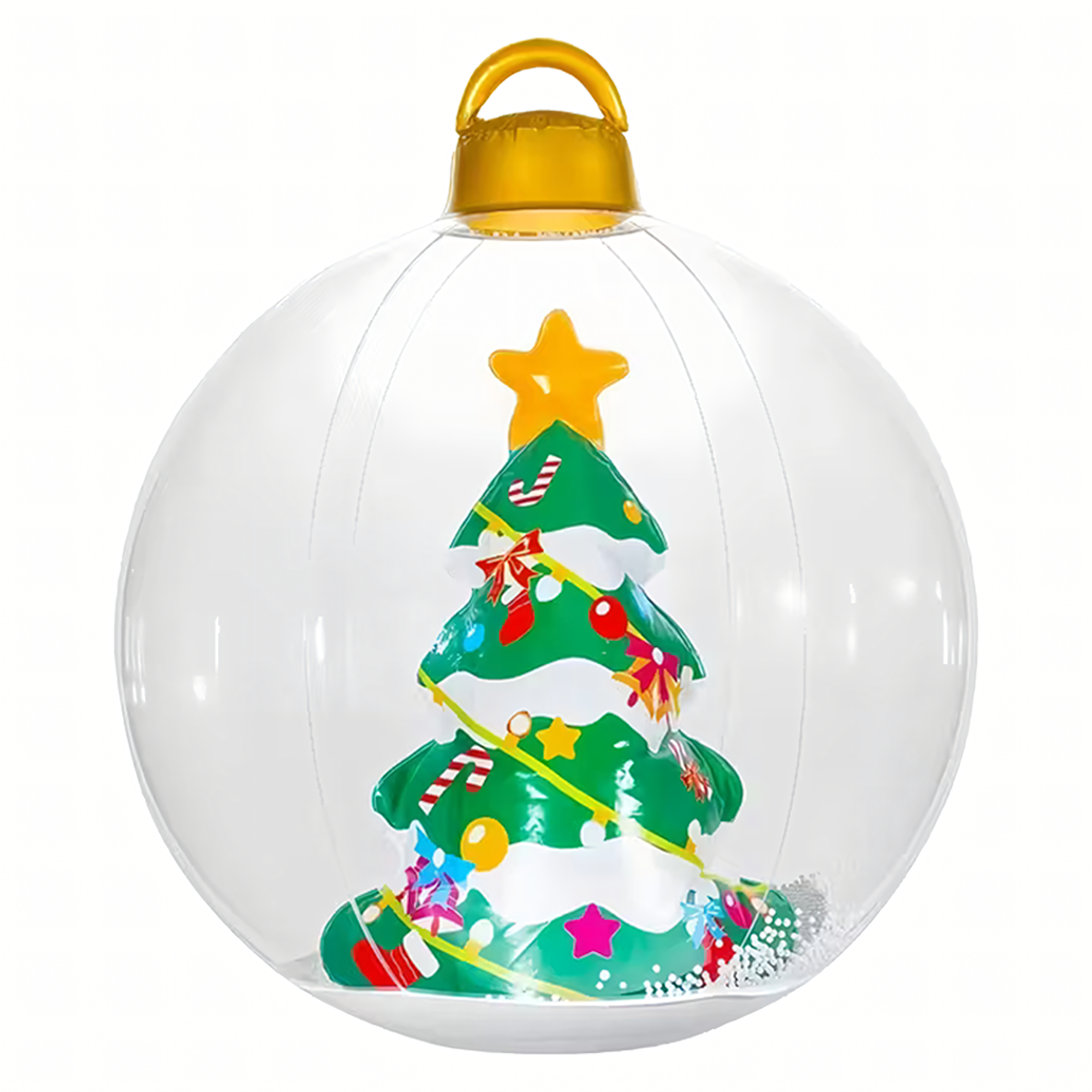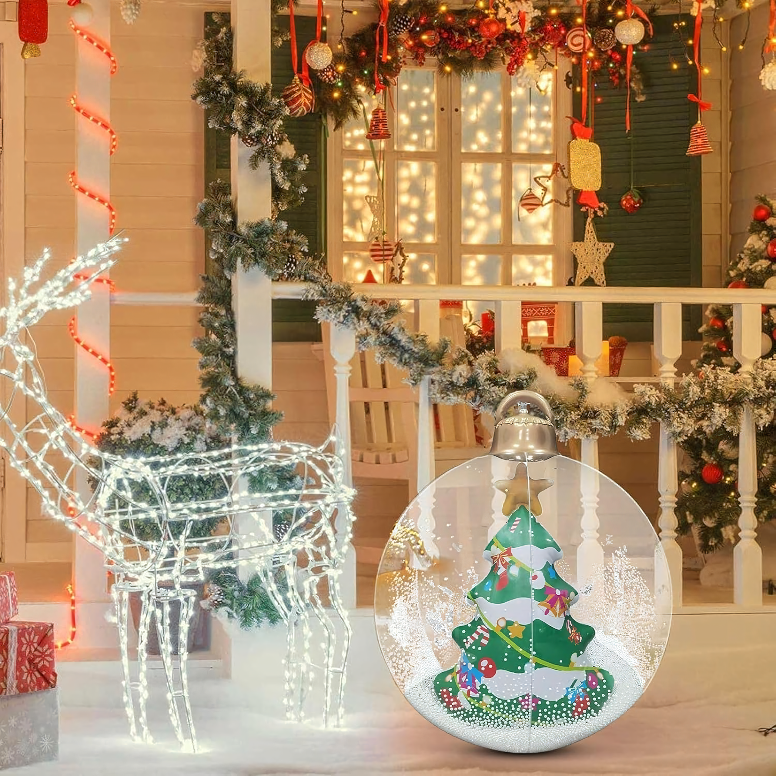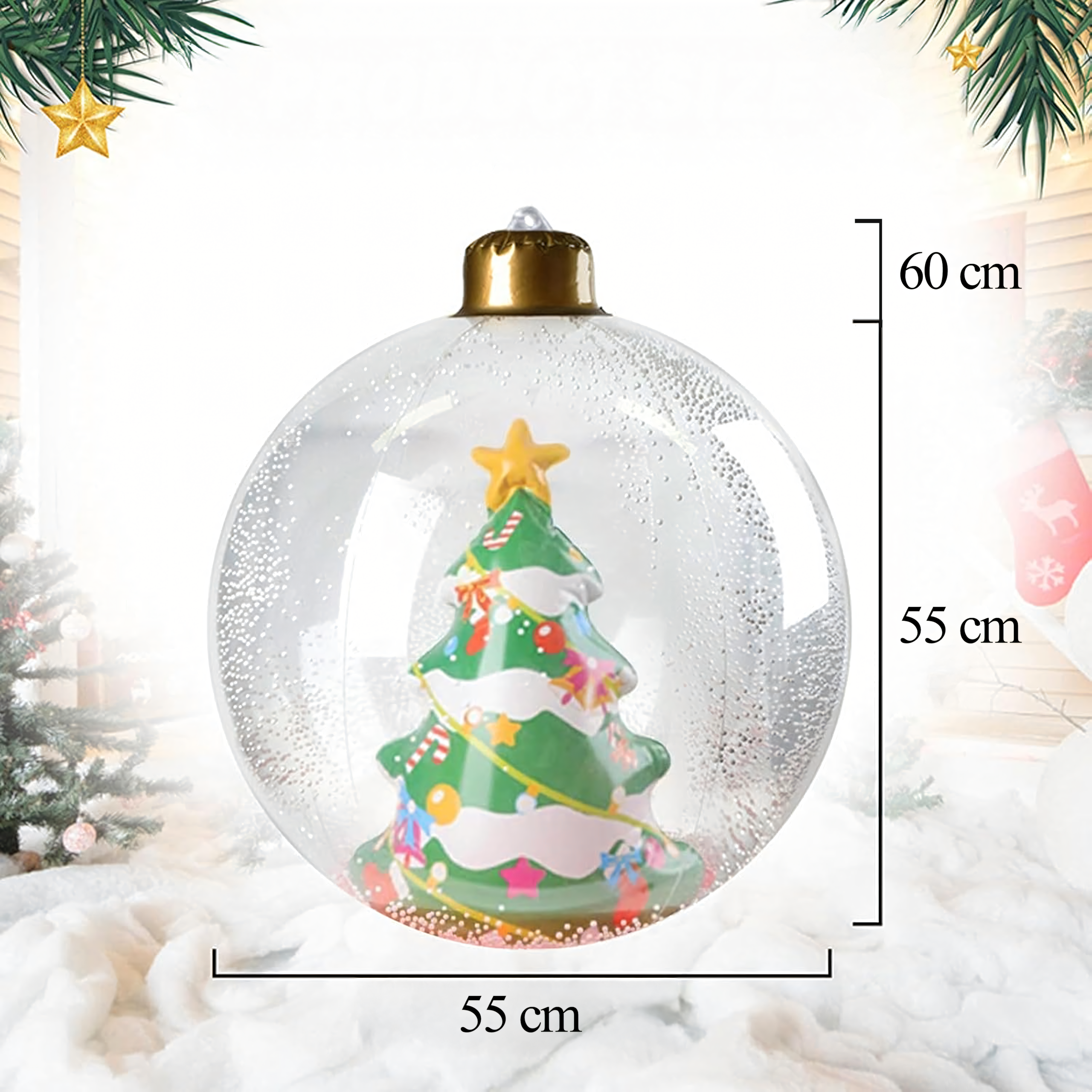 Dmuchana bombka świąteczna o imponującej średnicy 60 cm to wyjątkowa dekoracja, która nada Twojemu domowi i ogrodowi magicznego, bożonarodzeniowego klimatu. Wykonana z trwałego PVC, odporna na warunki atmosferyczne i wielokrotnego użytku – idealna na święta!
