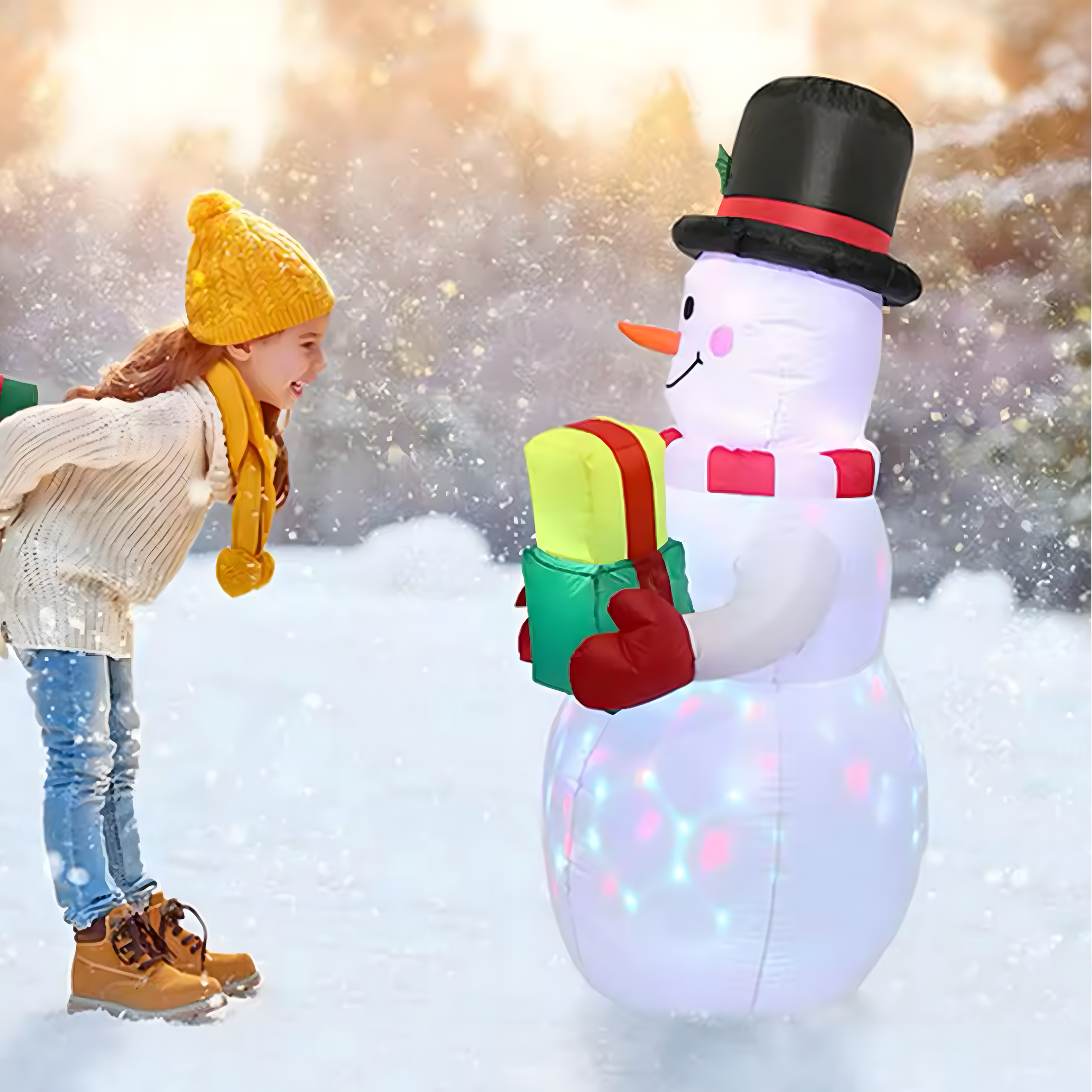 Dmuchany bałwan LED 150 cm to efektowna dekoracja świąteczna, która w kilka minut odmieni Twój ogród, taras lub salon. Dzięki wbudowanej dmuchawie bałwan automatycznie napełnia się powietrzem, a kolorowe diody LED rozświetlają zimowe wieczory, tworząc magiczny, bożonarodzeniowy klimat. W zestawie znajdują się kołki i linki mocujące, które zapewniają stabilność dekoracji nawet przy wietrznej pogodzie.