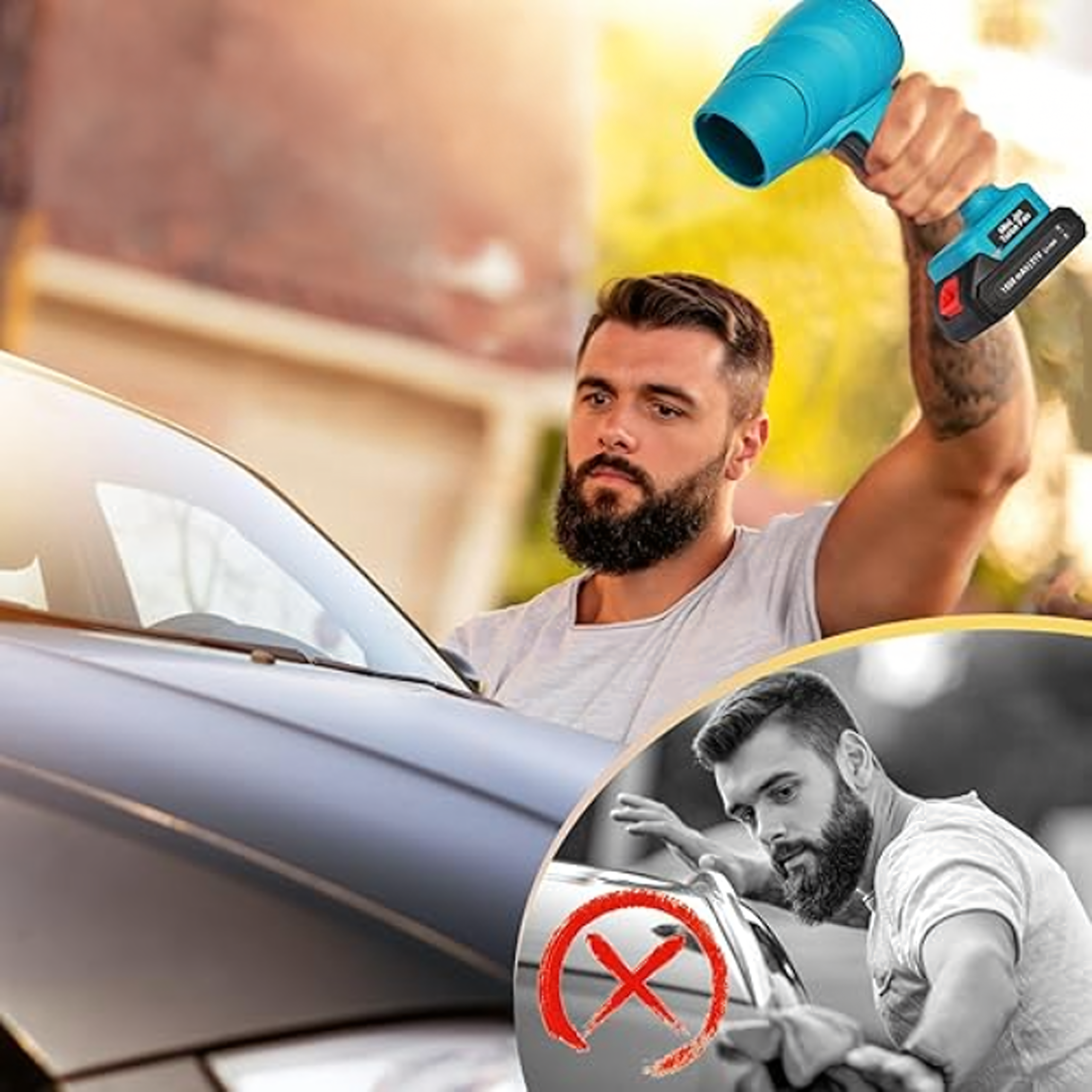 Bezprzewodowa dmuchawa akumulatorowa 400W z 2 akumulatorami 21V (2×1300 mAh) to lekkie, ergonomiczne i wszechstronne urządzenie do sprzątania i osuszania. Dzięki technologii turbowentylatora generuje mocny strumień powietrza, który błyskawicznie usuwa liście, kurz, pył czy świeży śnieg. Idealna do domu, ogrodu, garażu, warsztatu i w podróży.