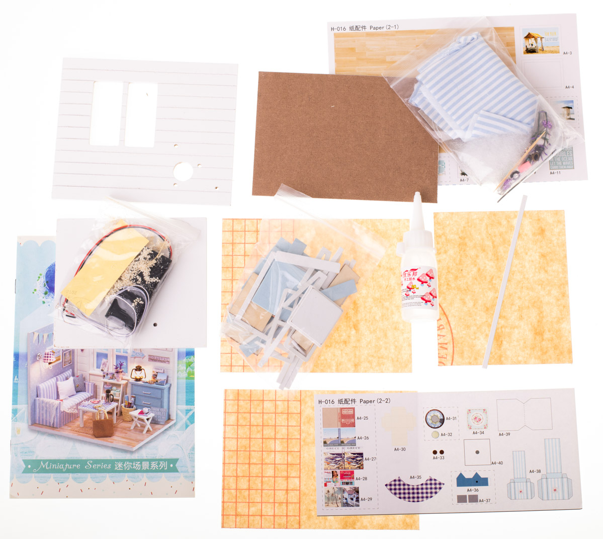 Domek dla lalek drewniany pokój dzienny model do złożenia LED DIY 3016 15,02cm