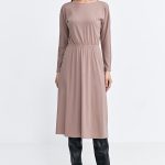 Zjawiskowa sukienka w pięknej kolorystyce, wykonana z materiału, który fantastycznie układa się wraz z ruchem ciała. O dopasowanym kroju, długości midi. Góra sukienki posiada dekolt w szpic ze zmysłowym odcięciem pod biustem oraz długie rękawy z marszczeniem przy ramionach. Sukienka podkreśli Twoją figurę. Sprawdzi się idealnie na różne przyjęcia czy wesela.
