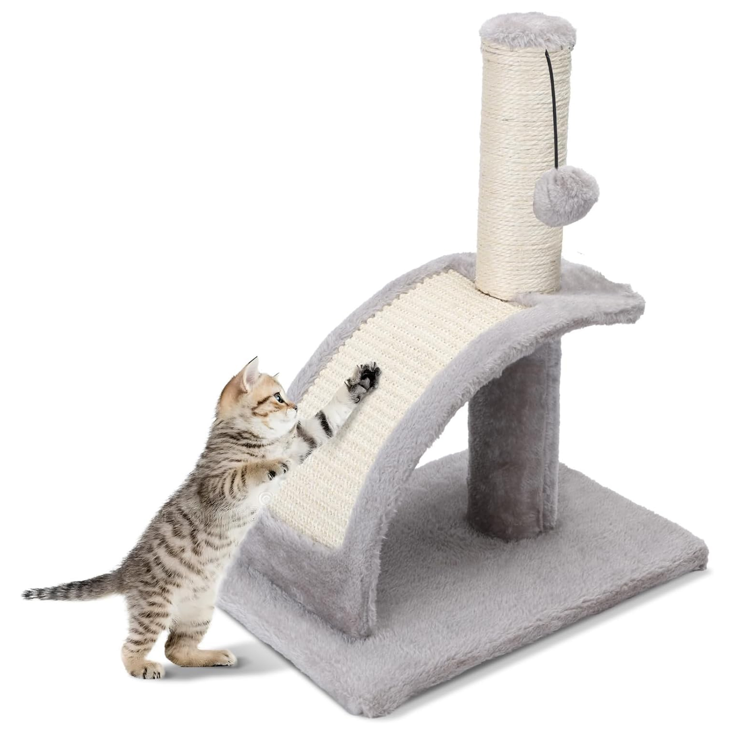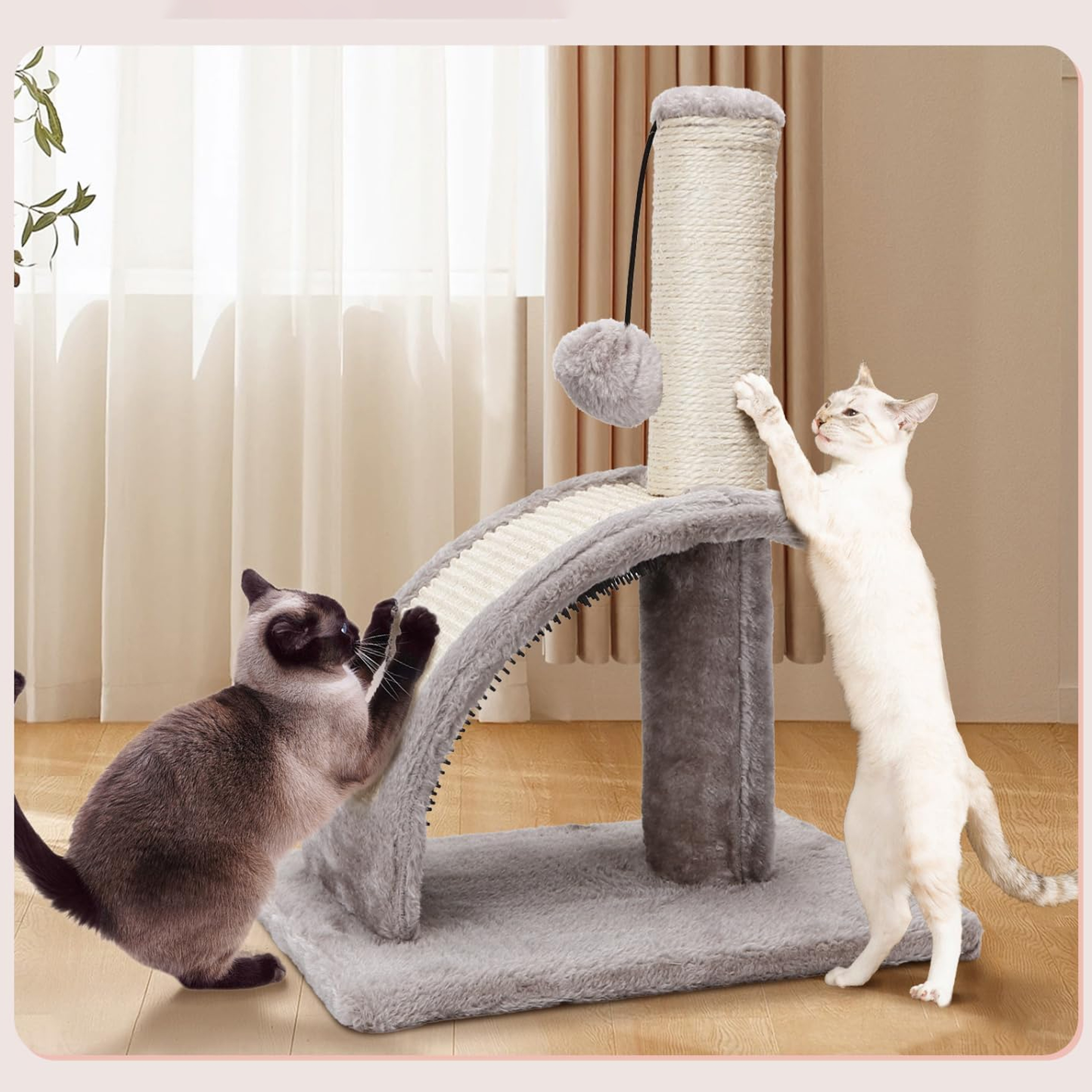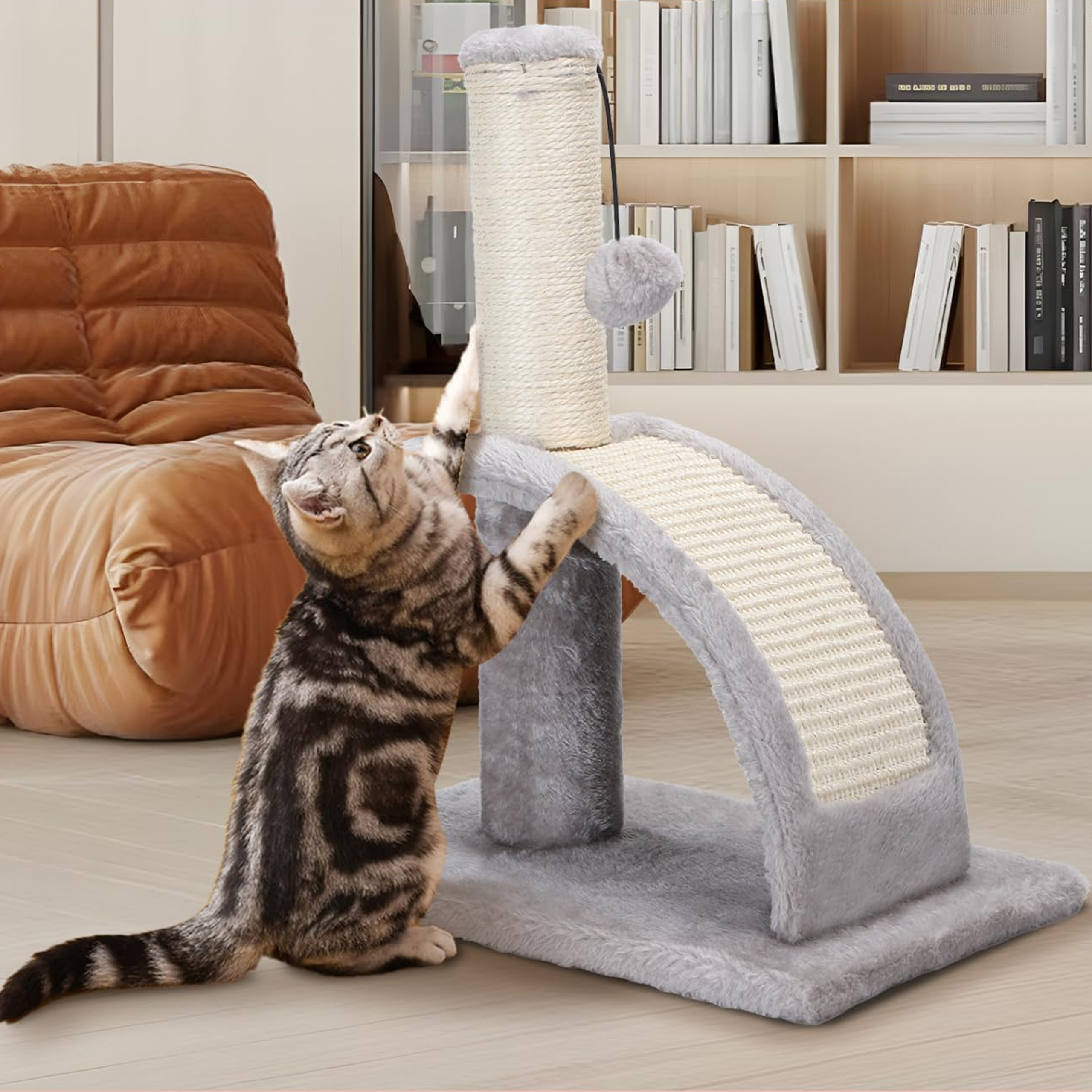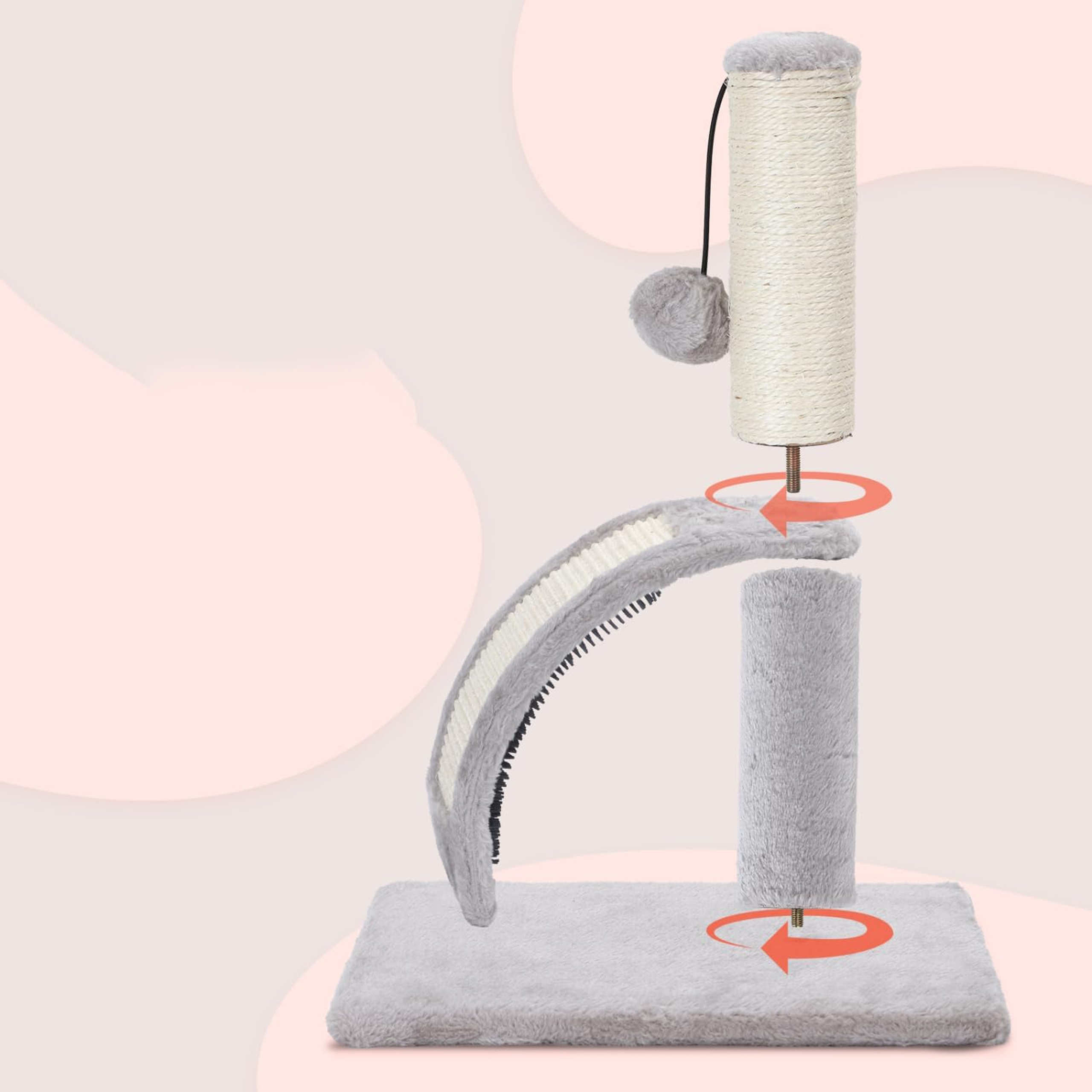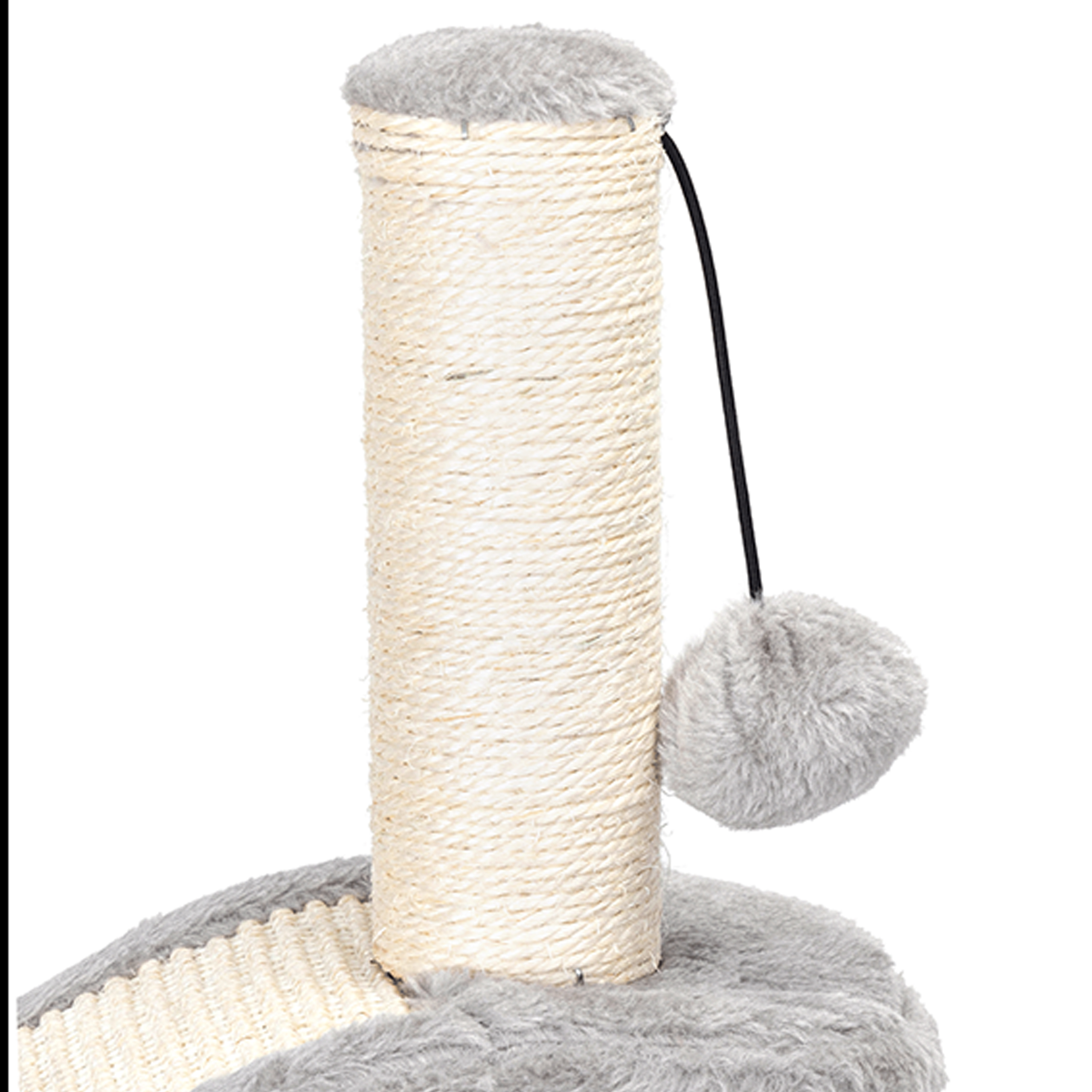 Nasz drapak dla kota w pełni zaspokaja jego aktywną naturę i instynkt pazurkowania. Słupek owinięty naturalną liną sizalową jest idealny dla kotów do ostrzenia pazurów i zapobiega niszczeniu mebli. Miękka, wytrzymała płyta EVA jest doskonała dla kotów do masażu lub pielęgnacji sierści. Co więcej, drapak dla kota ma wiszącą piłkę, którą koty mogą się bawić. Jedną z głównych zalet naszego drapaka dla kota jest wspaniale zaprojektowana drewniana podstawa, która jest stabilna i pokryta pluszem zapewniającym wysoki komfort, dzięki czemu jest idealnym miejscem dla kotów, gdy są zmęczone zabawą. Minimalistyczna konstrukcja oznacza, że można go ustawić bez większego wysiłku i czasu. Dzięki swojemu eleganckiemu wyglądowi drapak dla kota jest idealnym prezentem dla kota i doskonałą ozdobą domu.