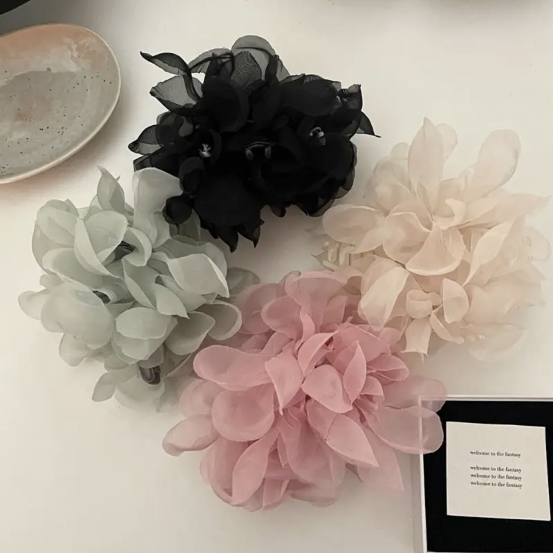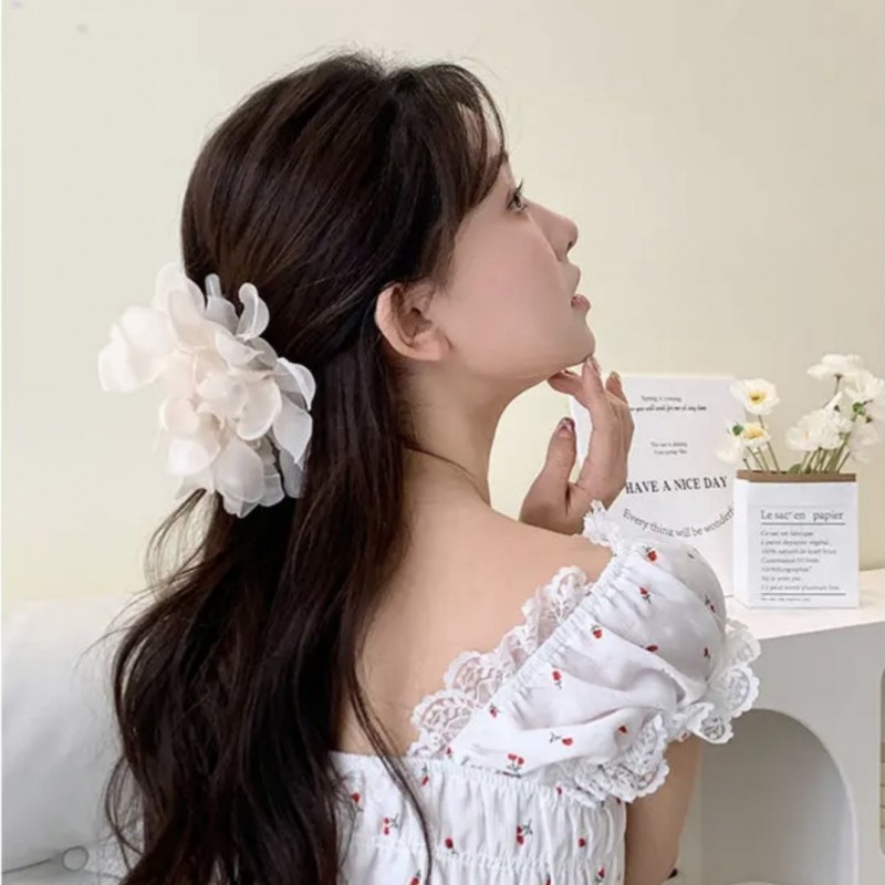 Duża kokarda tiulowa z perełkami, spinka do włosów, klamra SP323B
