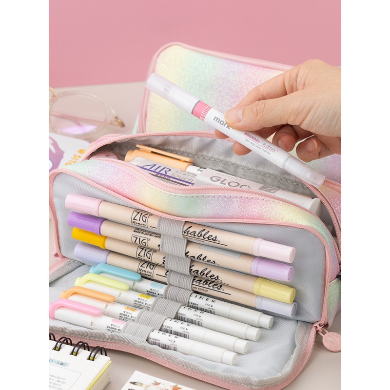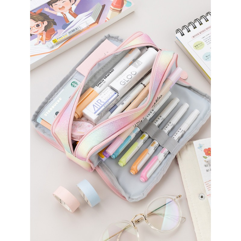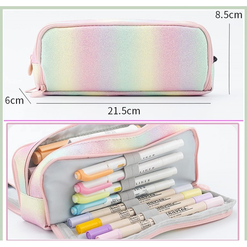 DUŻY PIÓRNIK WIELOFUNKCYJNY SASZETKA TRZYKOMOROWY TĘCZOWY PR02