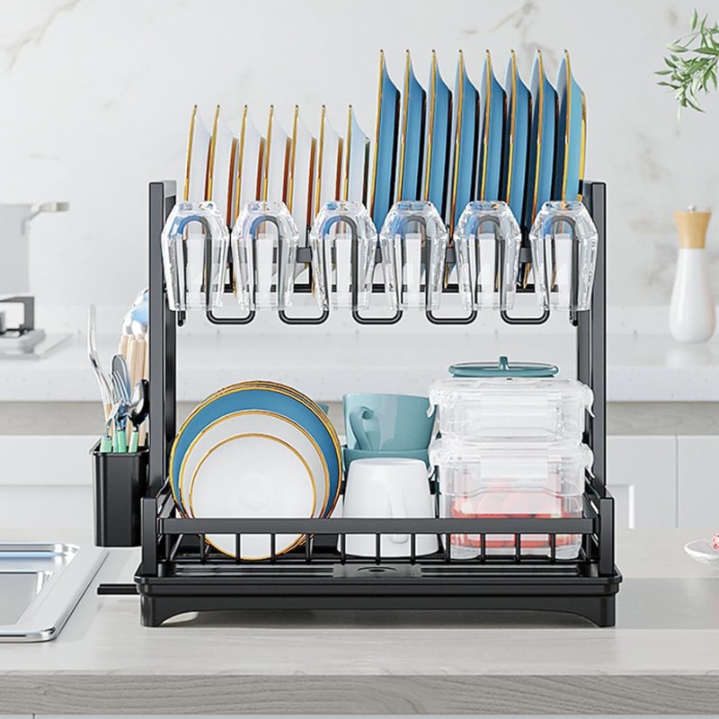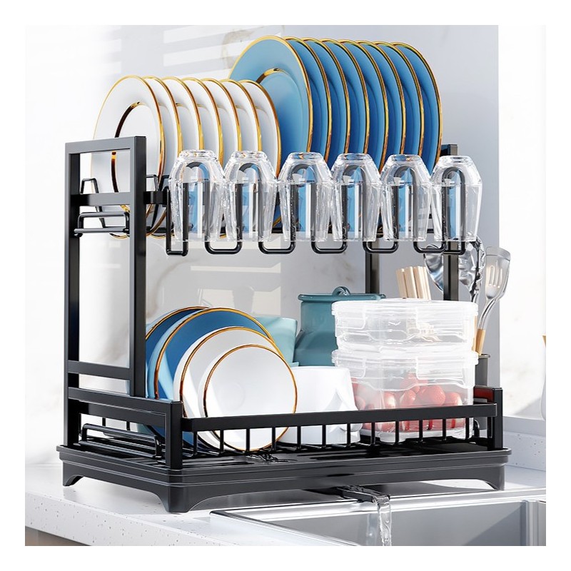 Dwupoziomowa suszarka do naczyń, sztućców, ociekacz z tacką 42x30x38cm SU06CZ