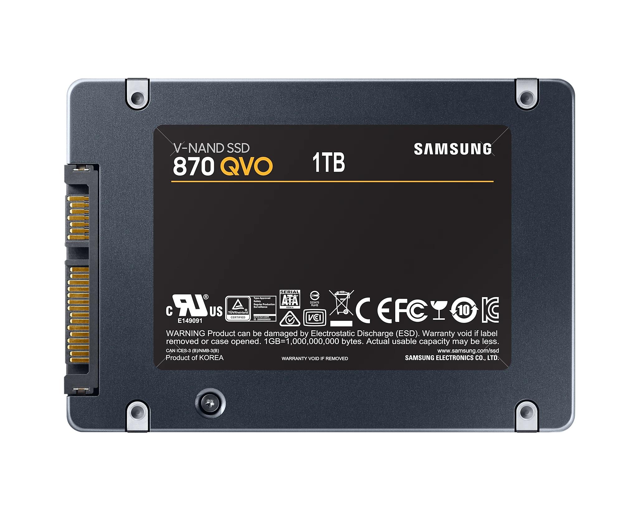 Samsung 870 QVO należy do najnowszej, drugiej generacji dysków SSD z pamięcią QLC, które oferuje firma Samsung. Posiada pojemność 1 TB w standardzie SATA. Niewiarygodnie zwiększa dotychczasowe możliwości użytkowników komputerów stacjonarnych i laptopów, poprawiając parametry pamięci do największej dostępnej pojemności, zwiększając wydajność urządzeń. Dysk 870 QVO osiąga maksymalny limit sekwencyjnych prędkości interfejsu SATA na poziomie do 560/530 MB/s. Dzięki temu uzyskuje lepsze losowe prędkości i wydajność, niż poprzedni model 860 QVO. Dysk wzmocniony technologią Inteligent TurboWrite z większym, zmiennym buforem zapewnia wyższe prędkości zapisu i najwyższą wydajność przez długi czas.