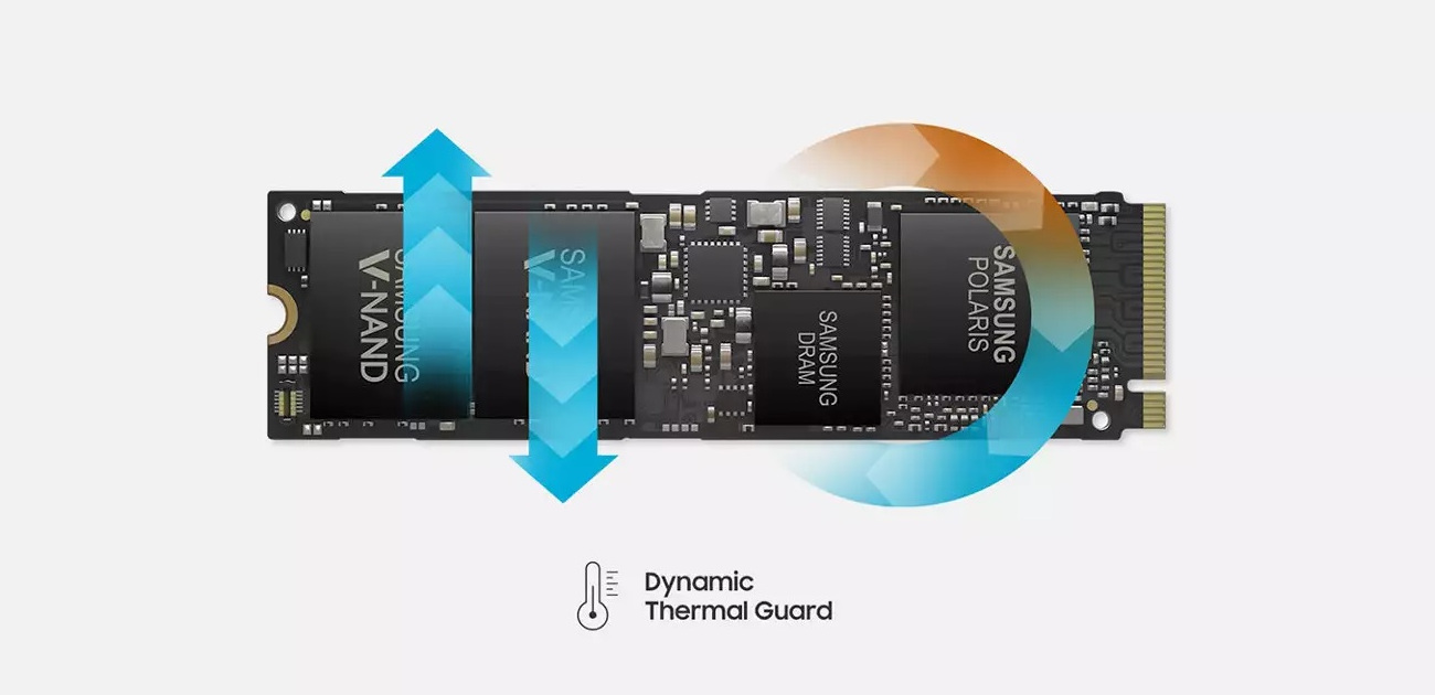 Dysk 960 EVO zapewnia 200 TBW (Total Bytes Written) w modelu 500 GB. W celu zwiększenia niezawodności dynamiczna osłona termiczna (DTG) monitoruje i dostosowuje temperaturę dysku, chroniąc w ten sposób dane i zapewniając optymalne reagowanie.