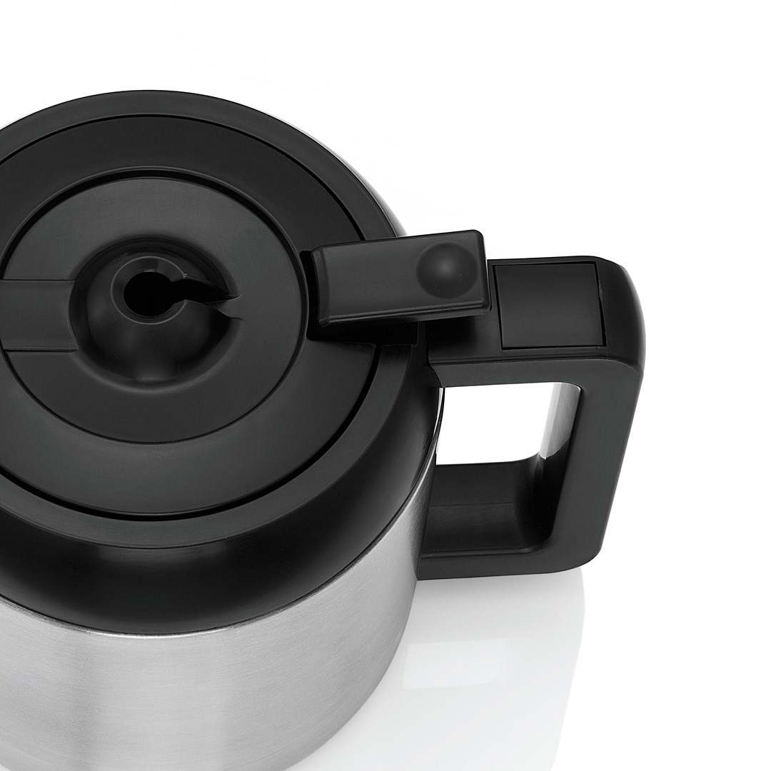 Typ produktu: Przelewowy ekspres do kawy • Kolor: Czarny, Stal nierdzewna.