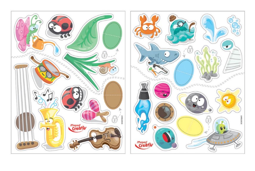 pakiet naklejek, by wzbogacić swoje kompozycje na przygotowanych arkuszach ze