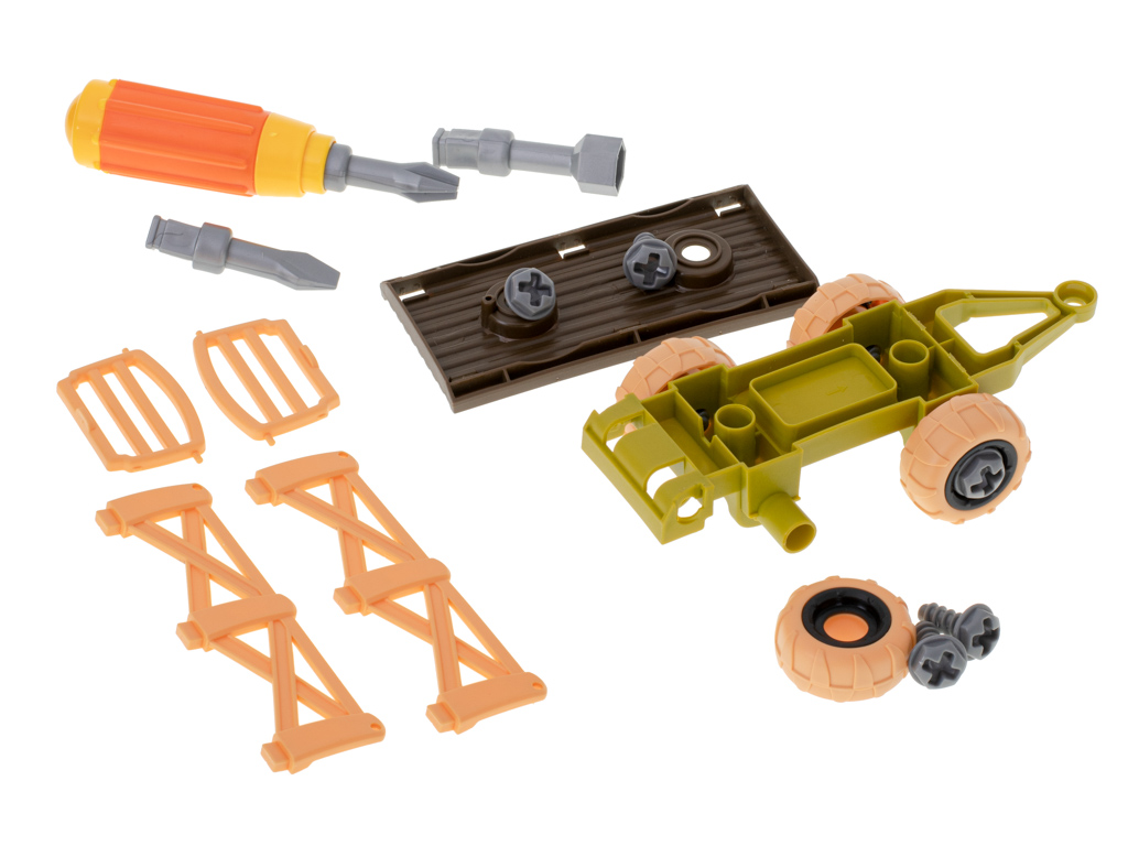 Fantastyczne gospodarstwo rolne z wieloma akcesoriami. Wszystkie pojazdy są rozkręcane za pomocą dołączonego zabawkowego śrubokręta. Zestaw wpłynie na rozwój motoryczny i rozwinie wyobraźnię dziecka. Dł. śrubokręta: 9cm. Wym. traktora: 14x8x9cm.