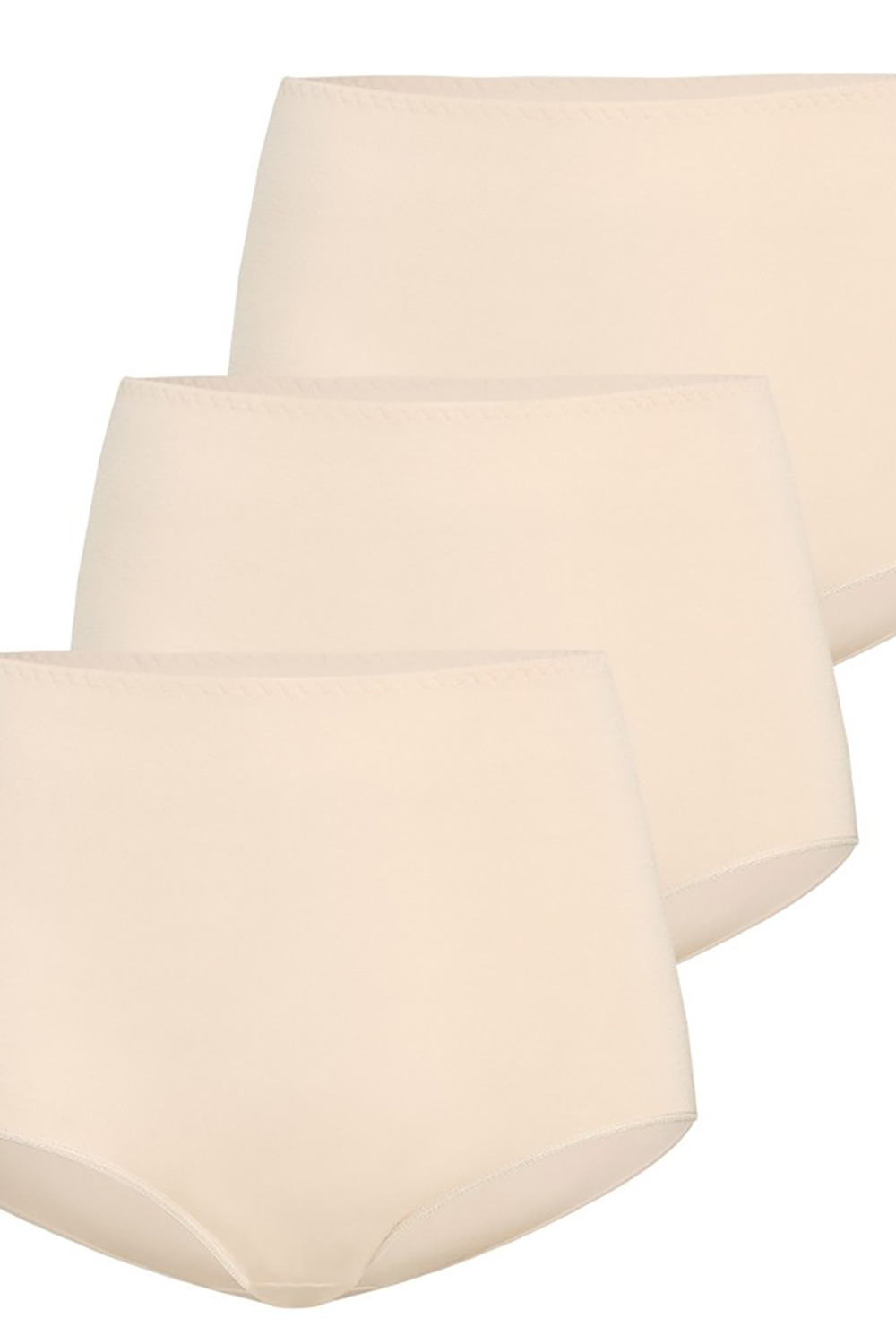 3-pack damskich majtek bambusowych z wysokim stanem w kolorze beżowym. Zestawy te cieszą się dużą popularnością wśród kobiet z uwagi na przystępną cenę. Fasonem przypominają zabudowane szorty, które maskują niedoskonałości sylwetki. Są adresowane do kobiet kochających prostotę i wygodę. Materiał, z którego są wykonane jest bardzo przyjemny dla ciała, delikatny, ponadto posiada właściwości przeciwbakteryjne i przeciwgrzybiczne.