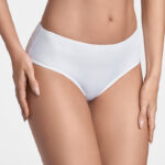 Figi damskie marki Ewana gładkie i kryjące z przodu oraz kusząco prześwitujące na pośladkach. Tył z siateczkowego tiulu i koronki.